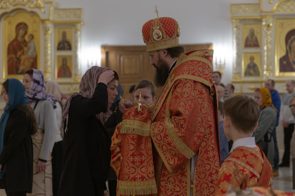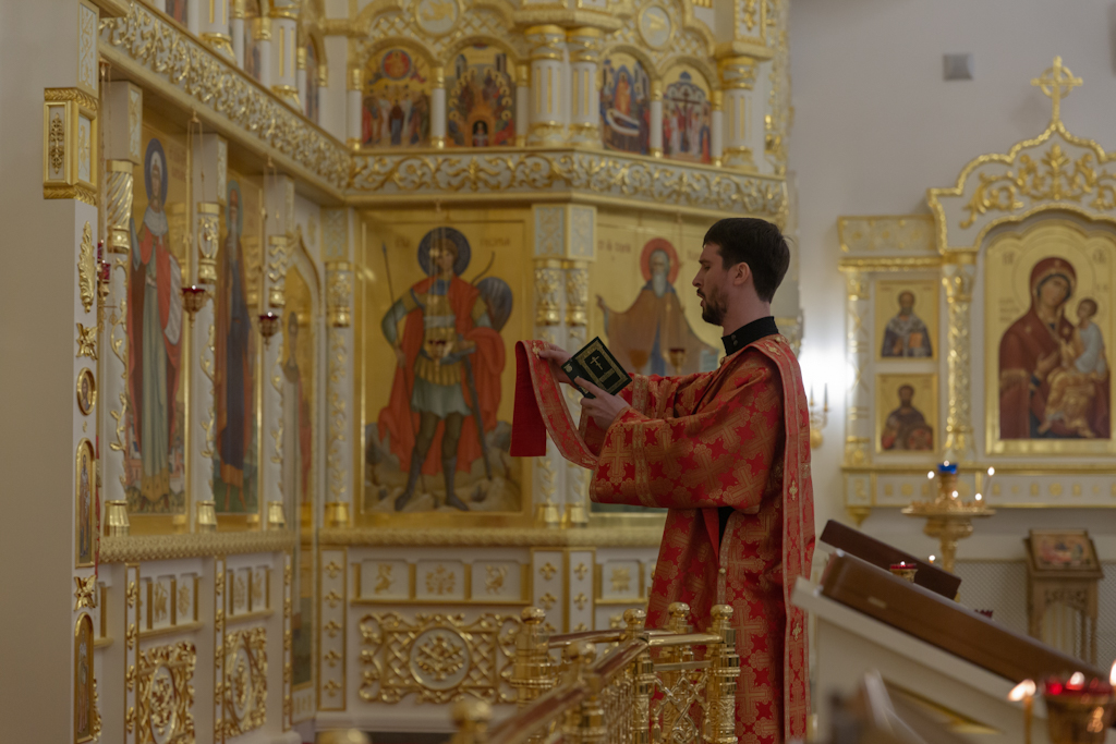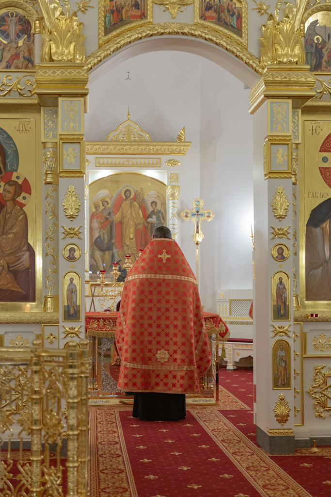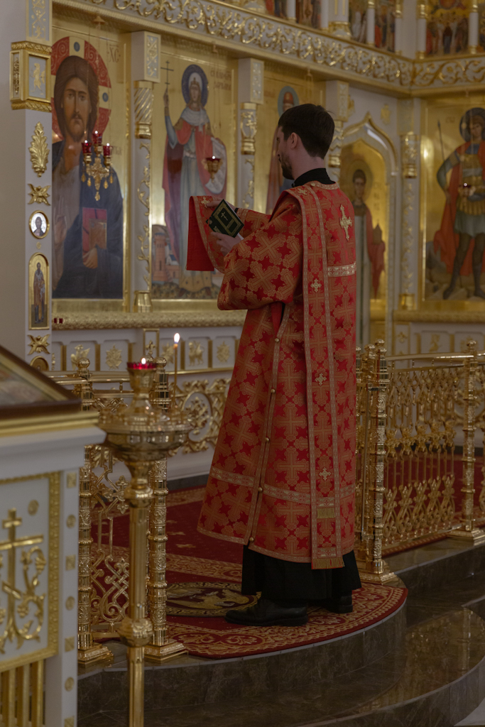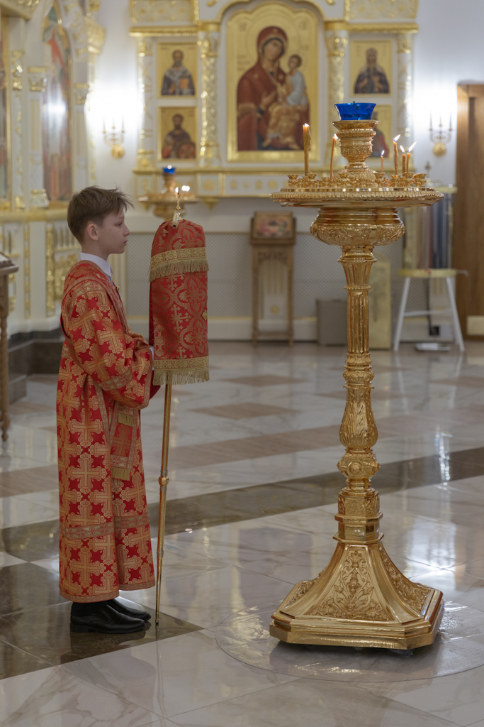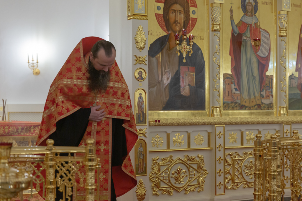 Его Преосвященству сослужили: секретарь Норильской епархии, настоятель храма великомученицы Варвары района Талнах города Норильска иеромонах Герман (Мельников); заведующий канцелярией Норильского епархиального управления, благочинный кафедрального собора иконы Божией Матери «Всех скорбящих Радость» города Норильска иерей Димитрий Прохоров; руководитель епархиального отдела по взаимодействию с казачеством, клирик храма Святой Троицы района Талнах города Норильска иерей Сергий Кузьменко; заместитель руководителя епархиального отдела религиозного образования и катехизации, клирик храма великомученицы Варвары иерей Антоний Проняев.