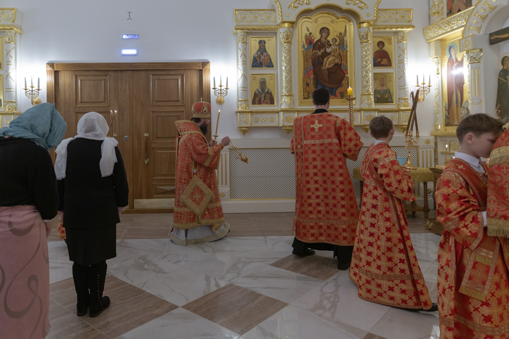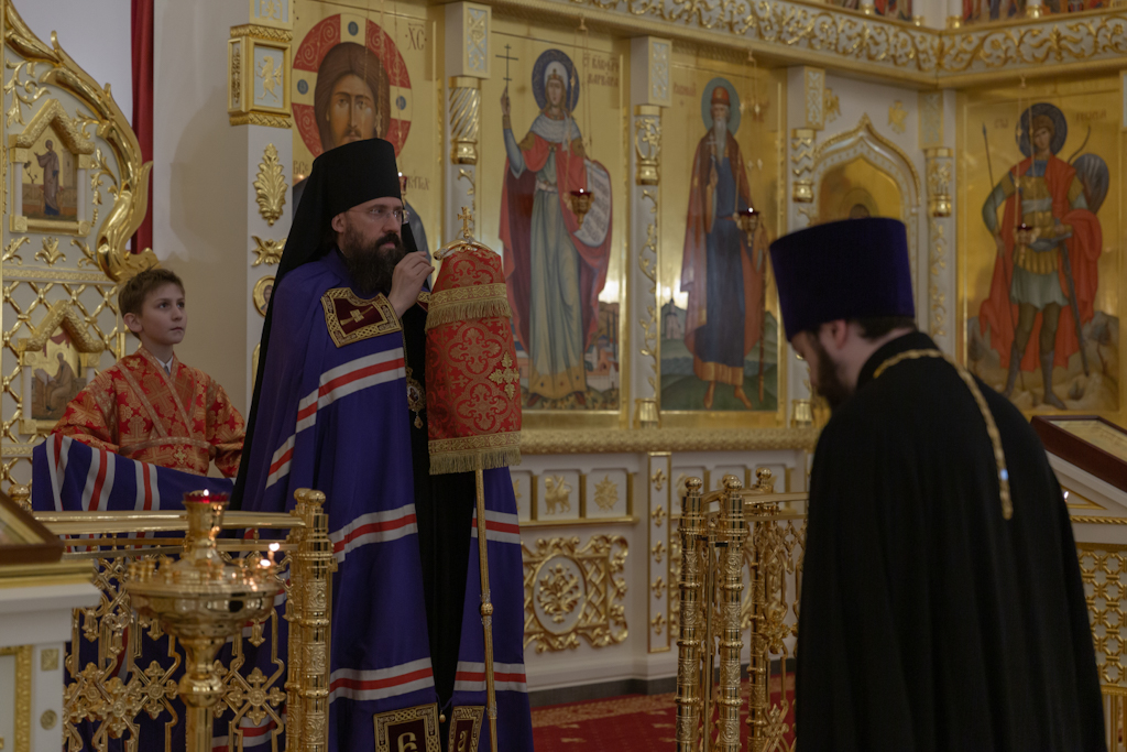 16 декабря 2022 года, в канун для памяти великомученицы Варвары, Преосвященнейший Агафангел, епископ Норильский и Туруханский, совершил всенощное бдение в храме великомученицы Варвары района Талнах города Норильска.