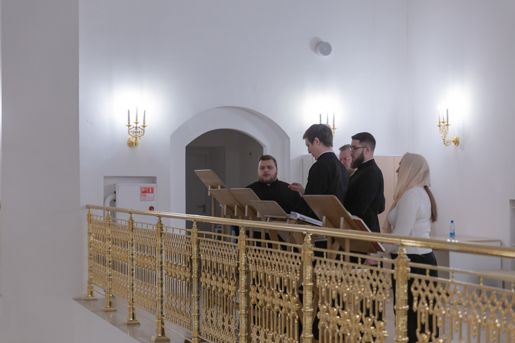 Богослужебные песнопения исполнил сводный хор выпускников Коломенской духовной семинарии разных лет под управлением диакона Николая Глухова.