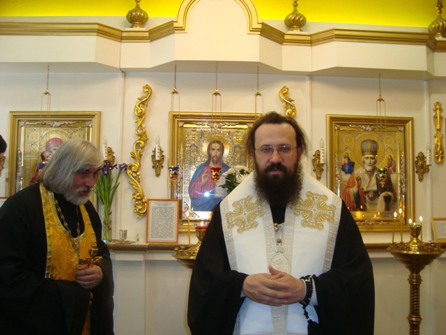 Владыка Агафангел в сослужении с протоиереем Владимиром совершили молебен с акафистом святителю Николаю, в пении которого приняли участие все молящиеся.