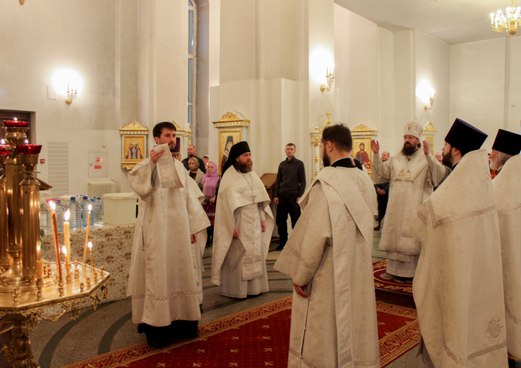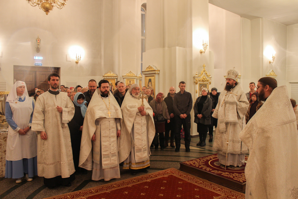 Накануне, вечером 18 января, епископ Агафангел в сослужении духовенства совершил всенощное бдение.