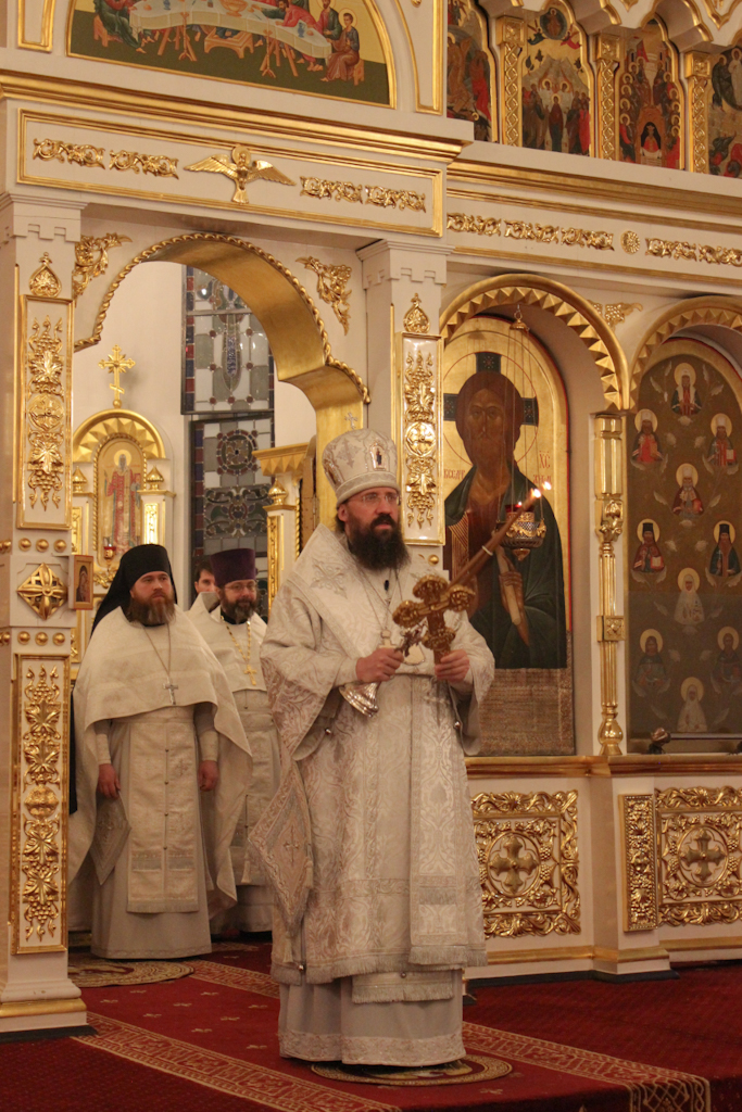 На сугубой ектении были вознесены особые прошения, Архипастырь прочитал молитву о Святой Руси.