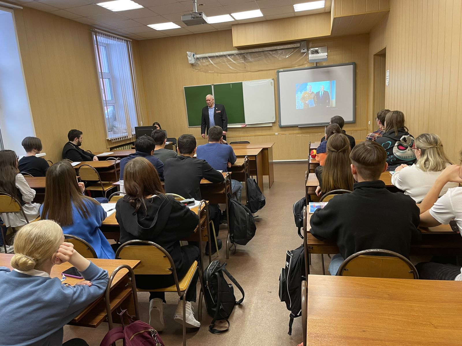 Первая часть собрания была посвящена Дню памяти воинов-интернационалистов. Собранию была представлена презентация о военных действиях в Афганистане, после чего перед студентами выступил один из преподавателей Университета, ветеран военных действий в Афганистане Федор Михайлович Бабич. Федор Михайлович ответил на вопросы студентов и рассказал о жизни молодых солдат времен войны в Афганистане.