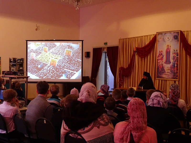 На презентации выставки Владыка рассказал краткую историю создания монашеской республики, об организации монашеской жизни в афонских монастырях, об особенностях богослужения. Владыка поделился своими личными впечатлениями от общения с насельниками монастырей. Также был показан слайд-фильм, который дополнил впечатление от фотографий.