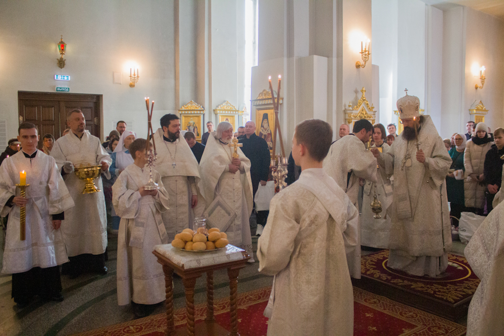 По заамвонной молитве Архипастырь совершил освящение хлеба и вина.