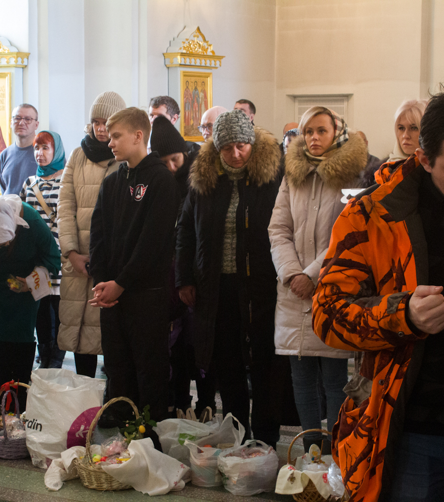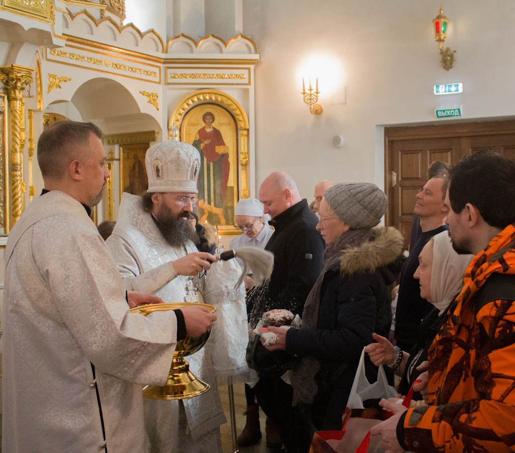 По традиции в завершение богослужения были освящены пасхальные куличи и яйца.