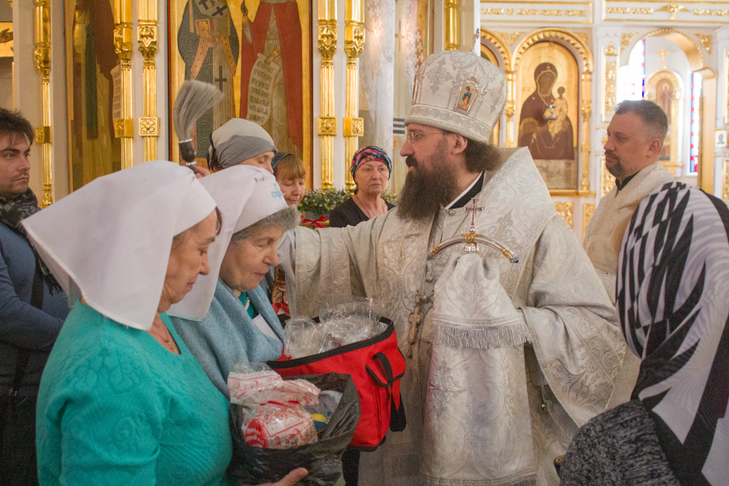 Его Преосвященству сослужили: духовник Норильской епархии протоиерей Владимир Иванов; руководитель епархиального отдела по социальному служению и церковной благотворительности иерей Алексий Пирогов; заведующий канцелярией Норильского епархиального управления, благочинный кафедрального собора г. Норильска иерей Димитрий Прохоров; ключарь кафедрального собора г. Норильска иерей Иоанн Помазкин.