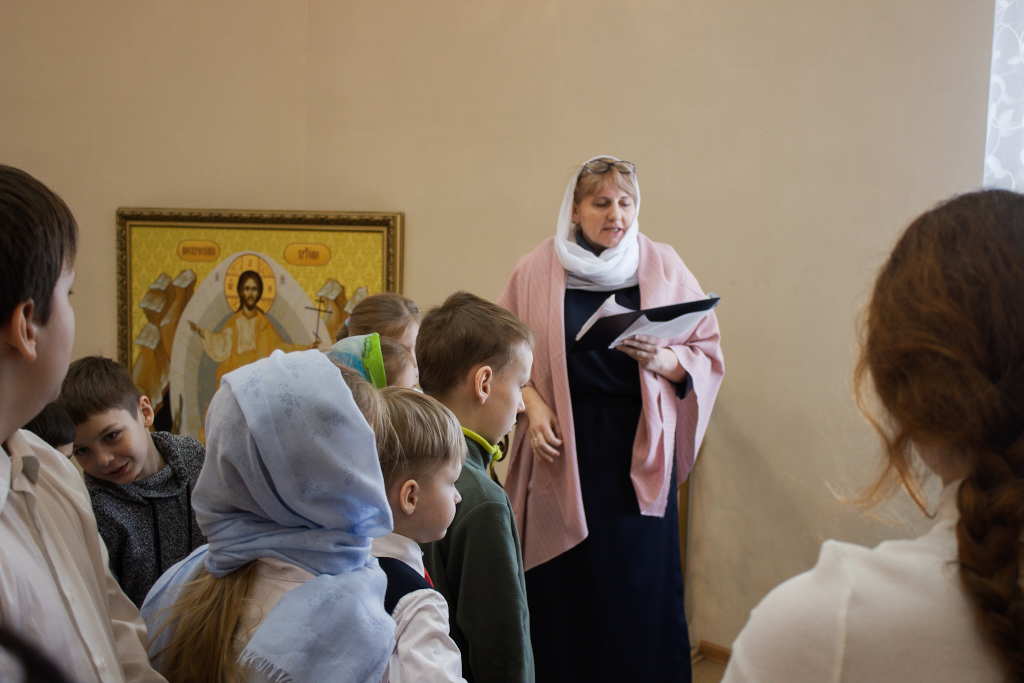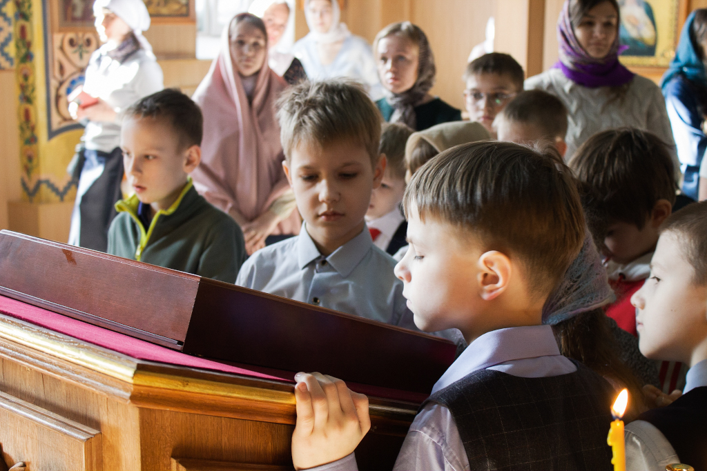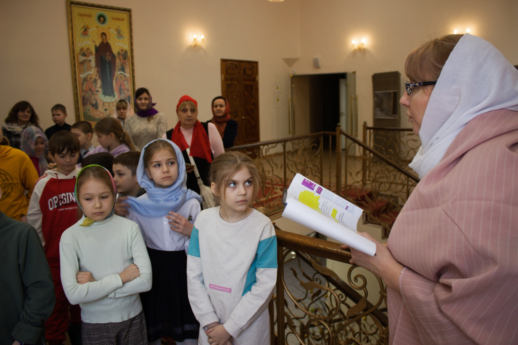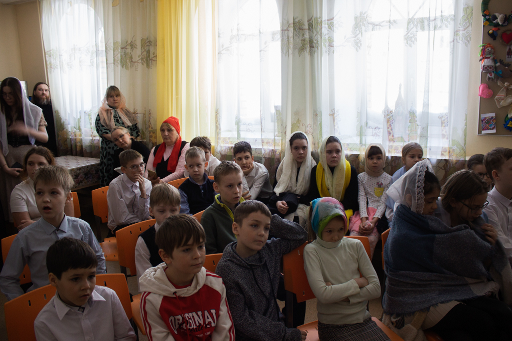 Перед началом мероприятий педагоги, учащиеся воскресных школ и их родители молились за Божественной литургией в домовом храме Рождества Иоанна Предтечи при Норильском епархиальном управлении. Богослужение совершил ключарь кафедрального собора иконы Божией Матери «Всех скорбящих Радость» г. Норильска иерей Иоанн Помазкин.
