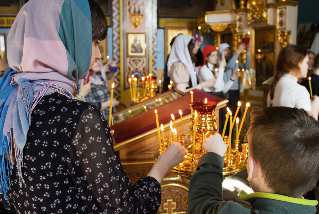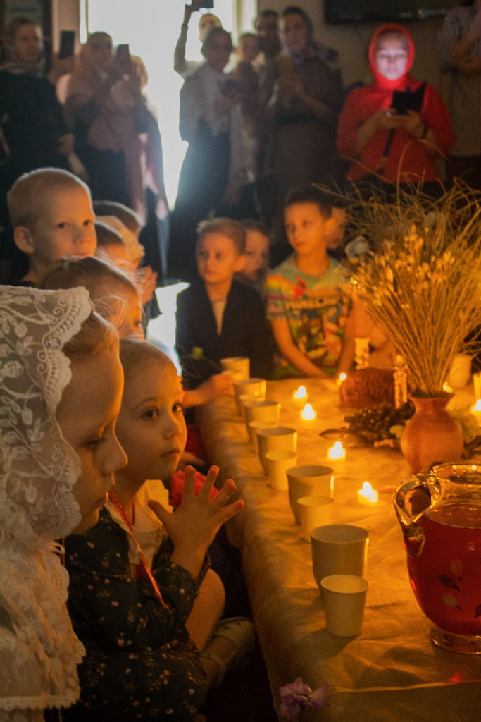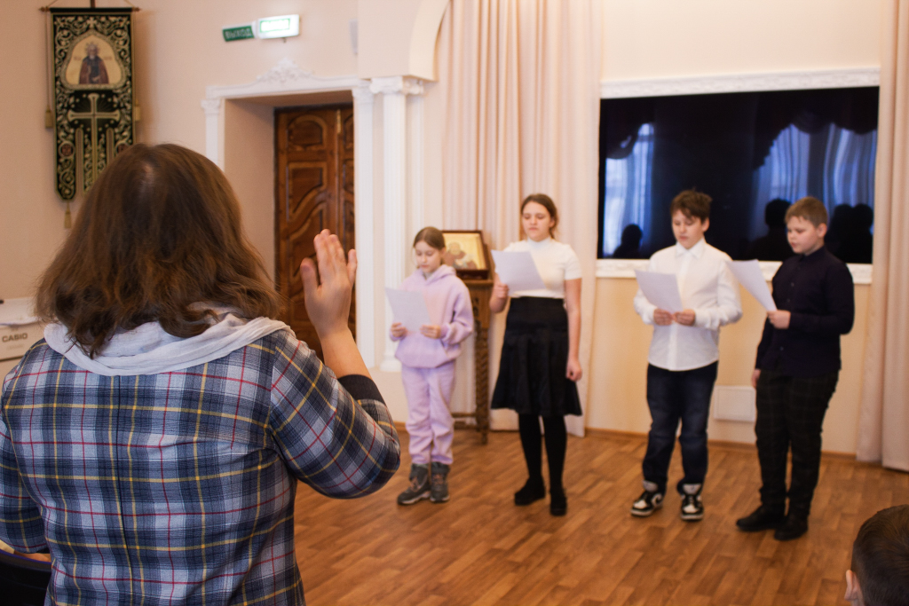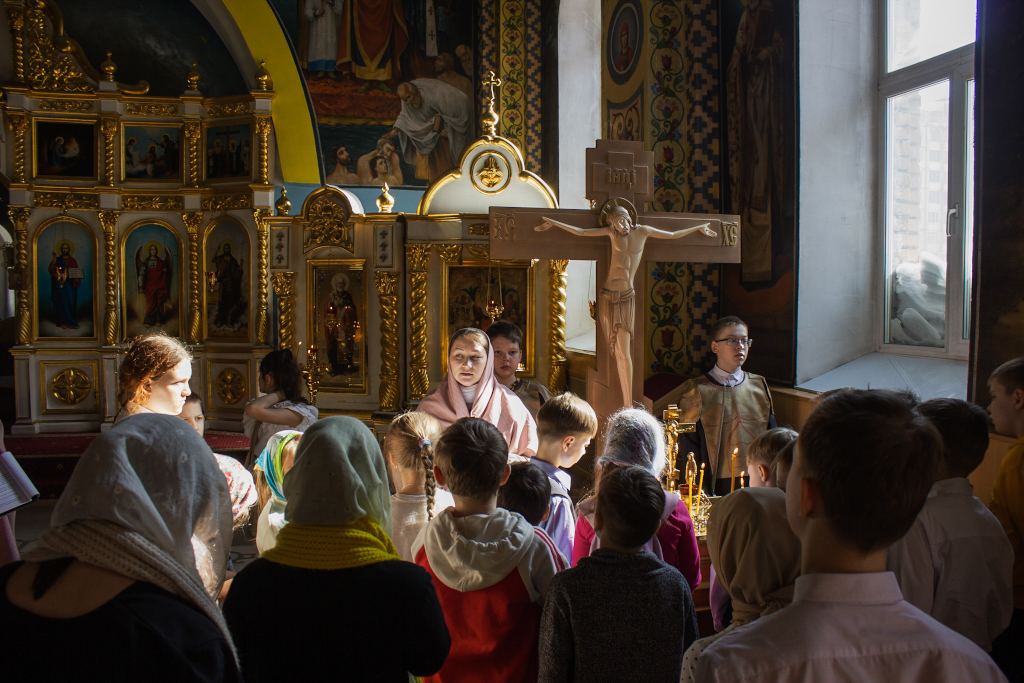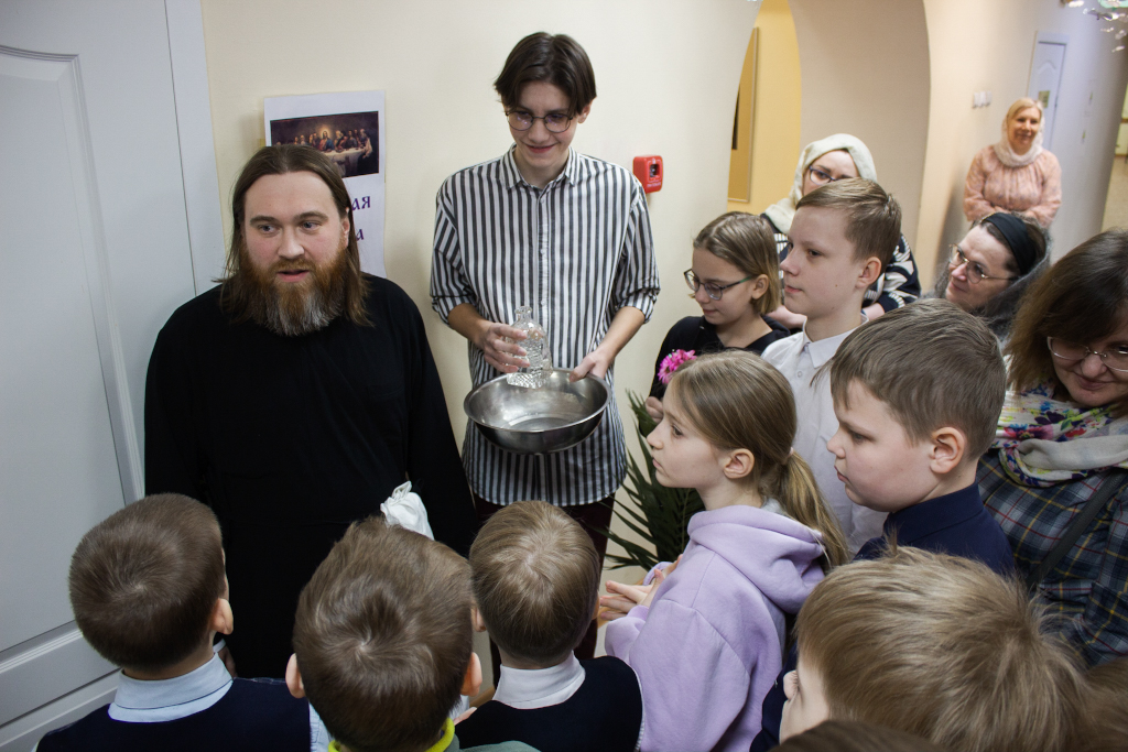 Перед началом мероприятий педагоги, учащиеся воскресных школ и их родители молились за Божественной литургией в домовом храме Рождества Иоанна Предтечи при Норильском епархиальном управлении. Богослужение совершил ключарь кафедрального собора иконы Божией Матери «Всех скорбящих Радость» г. Норильска иерей Иоанн Помазкин.
