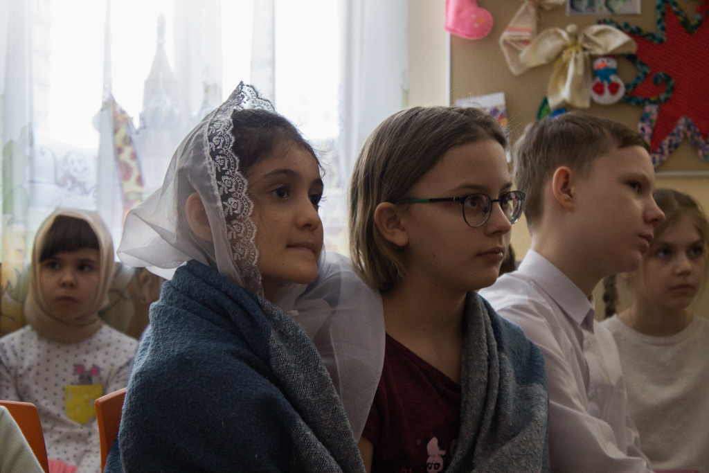 Далее в актовом зале Духовно-просветительского центра г. Норильска для воспитанников воскресных школ состоялся показ детского фильма «Девочка и робот».
