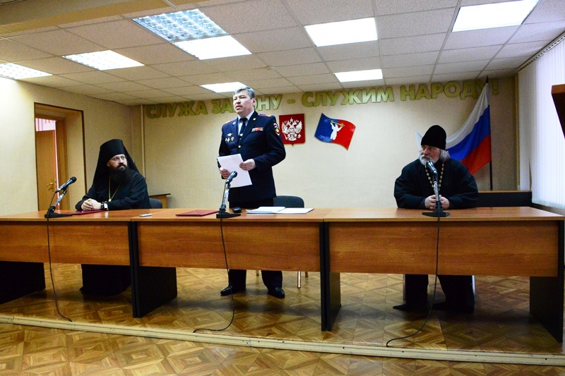 Обратившись к присутствующим, Владыка Агафангел и руководитель норильской полиции особо отметили важную роль Русской Православной Церкви в деле формирования личности сотрудника охраны правопорядка, и особенно его духовно-нравственной составляющей. Правящий Архиерей выразил глубокую благодарность личному составу и руководству Отдела за всестороннюю поддержку священнослужителей епархии, а полковник Маслов, в свою очередь, заверил Его Преосвященство, что и впредь, и он, и все полицейские НПР будут прикладывать максимум усилий в этом богоугодном деле – духовного окормления и поддержки защитников закона.