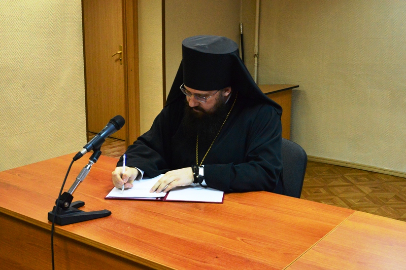 Его Преосвященство сопровождали: секретарь Норильской епархии иеромонах Герман (Мельников), благочинный Норильского округа церквей протоиерей Владимир Иванов и руководитель епархиального отдела по взаимодействию в правоохранительными структурами протоиерей Димитрий Харцыз.