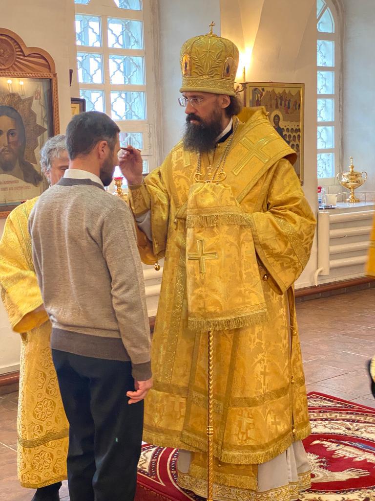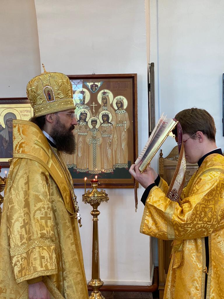 За Литургией Его Преосвященству сослужили благочинный Туруханского округа, настоятель Свято-Троицкого монастыря села Туруханск игумен Софроний (Семенов) и настоятель храма мученика Василия Мангазейского в посёлке Бор Туруханского района иерей Вячеслав Селедцов.