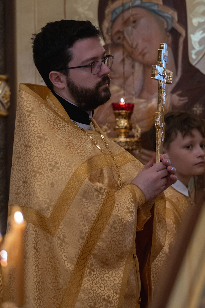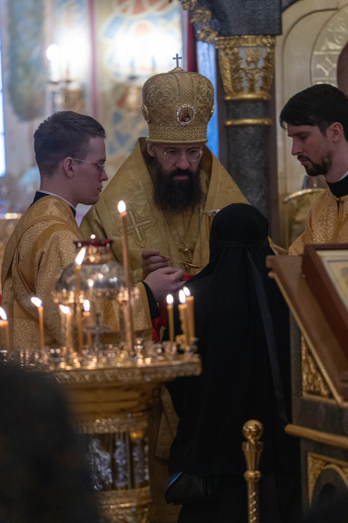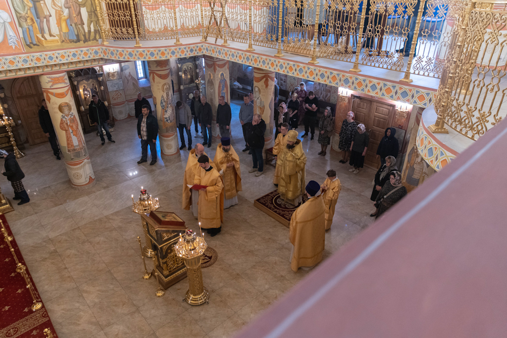 На сугубой ектении были вознесены особые прошения, Архипастырь прочитал молитву о Святой Руси.