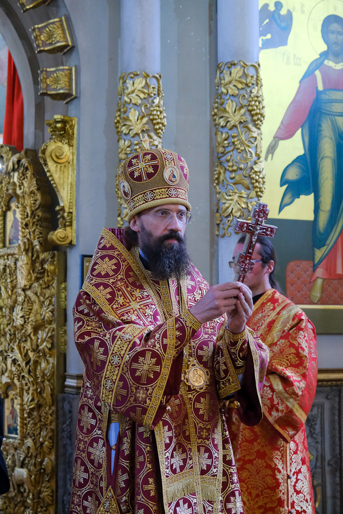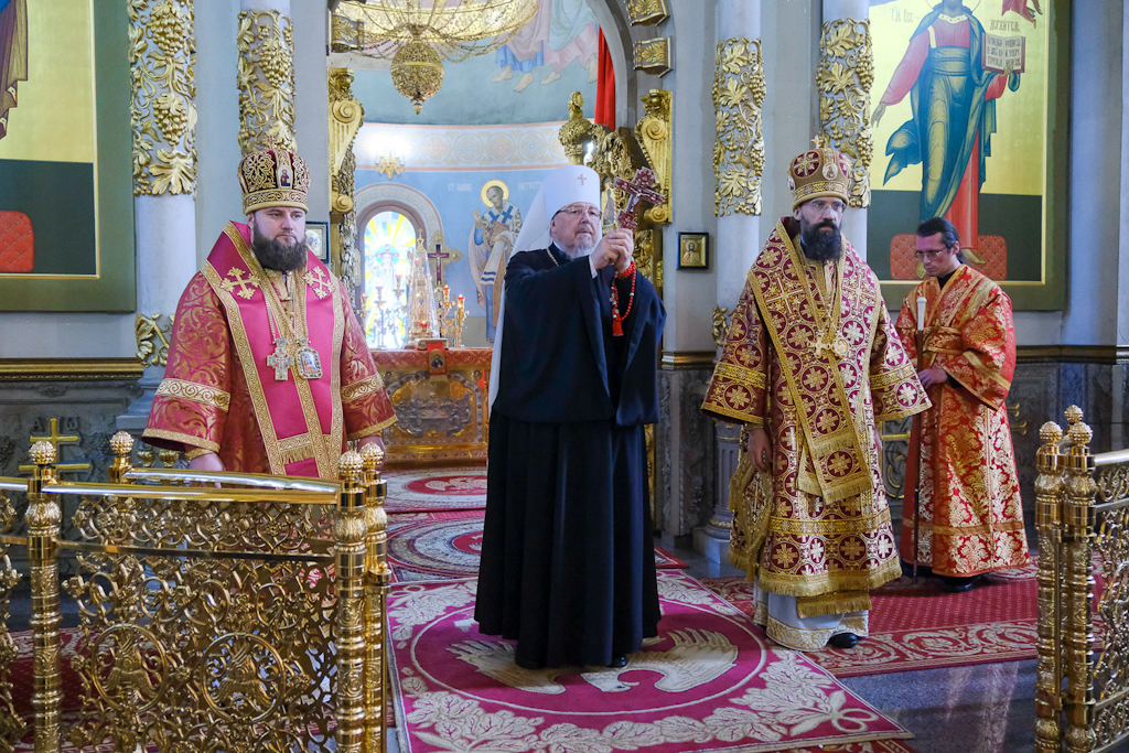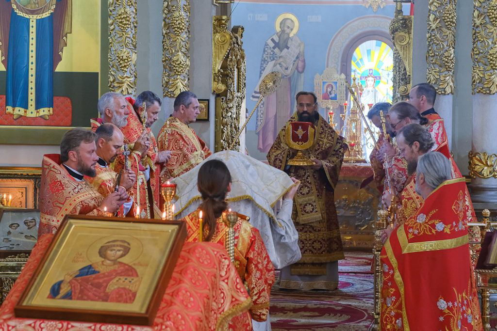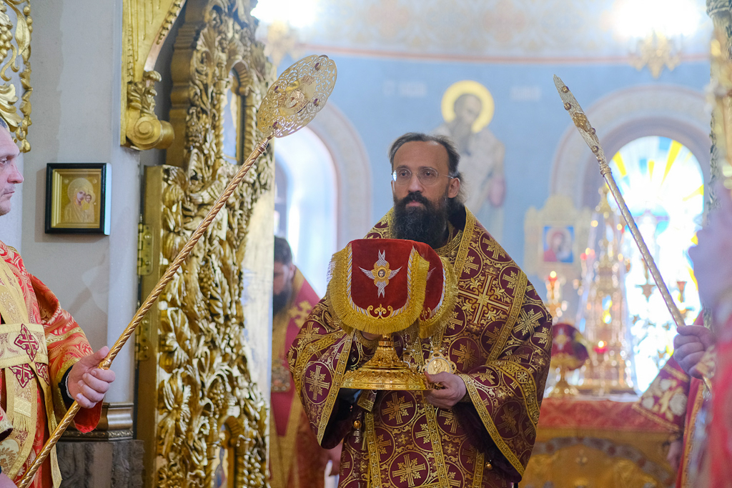 За Литургией иерархам сослужили: руководитель Административного секретариата Красноярской епархии, настоятель Покровского кафедрального собора Красноярска митрофорный протоиерей Владимир Дорош; секретарь Красноярской епархии, благочинный Левобережного округа церквей города Красноярска, наместник красноярского Успенского мужского монастыря игумен Иннокентий (Нилов); благочинный церквей Ачинского округа, настоятель Казанского собора митрофорный протоиерей Евгений Фролов; заведующий канцелярией Красноярской епархии, настоятель Иоанно-Предтеченского храма города Красноярска протоиерей Николай Ши-кэ-мин; секретарь Минусинской епархии, благочинный Минусинского благочиния, настоятель Спасского кафедрального собора Минусинска протоиерей Евгений Нещерет; благочинный Правобережного округа города Красноярска, настоятель храма протоиерей Максим Смоляков; благочинный Шарыповского церковного округа, настоятель Свято-Троицкого собора города Шарыпово протоиерей Павел Фролов; секретарь Канской епархии, настоятель Свято-Троицкого кафедрального собора города Канска иерей Александр Колпаков; руководители епархиальных отделов, благочинные церковных округов, настоятели и штатные священнослужители приходов Красноярской епархии.