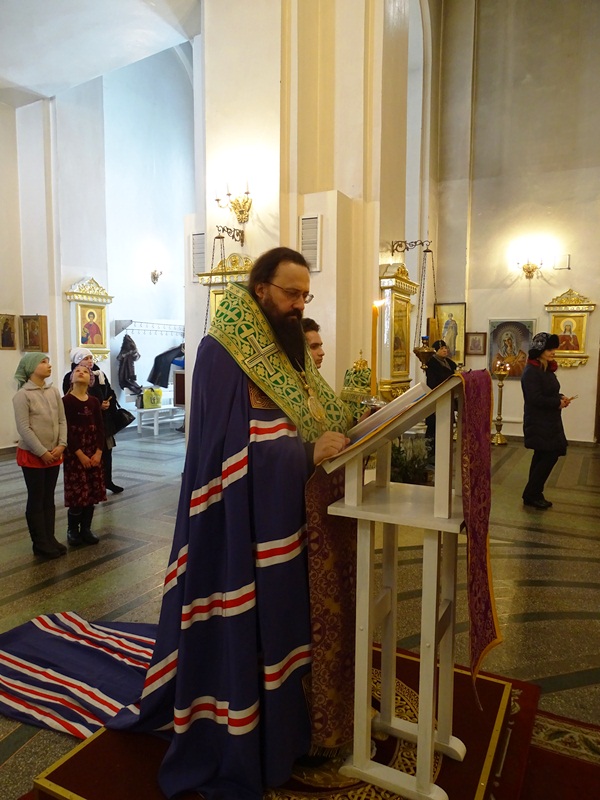 Молебен возглавил Преосвященнейший Агафангел, епископ Норильский и Туруханский. Его Преосвященству сослужил секретарь Норильской епархии иеромонах Герман (Мельников).