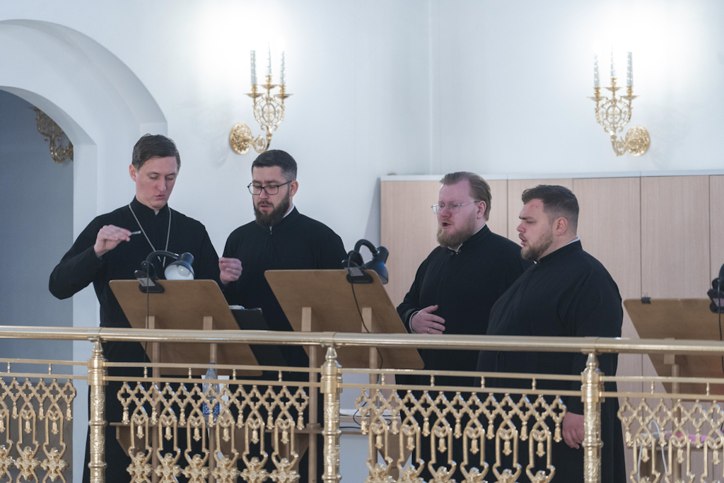 Богослужебные песнопения исполнил сводный хор выпускников Коломенской духовной семинарии разных лет под управлением священника Николая Глухова.