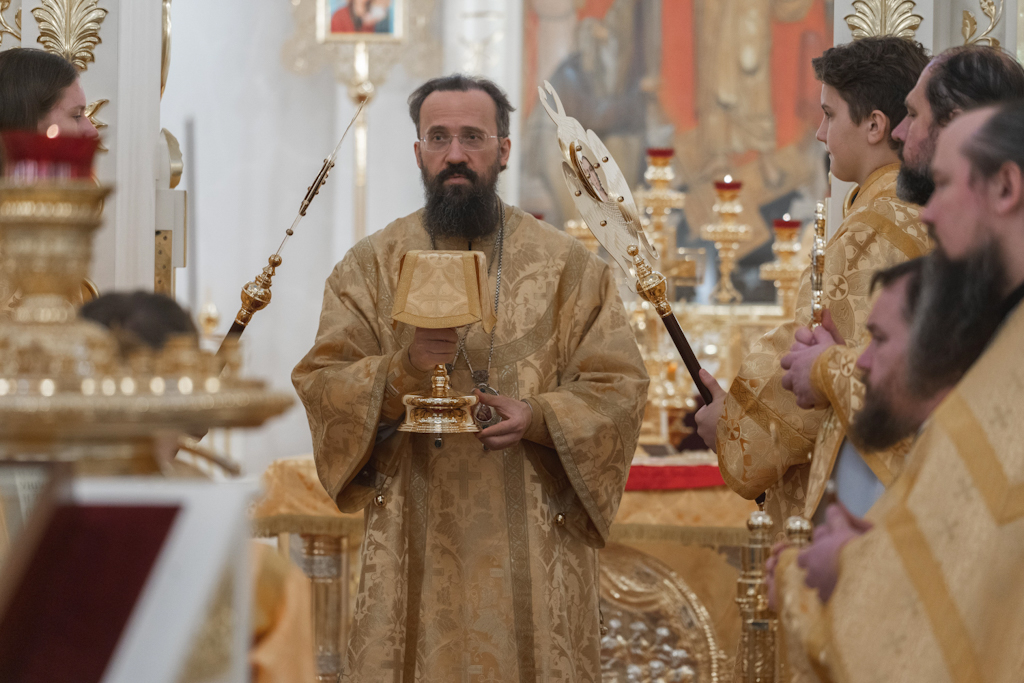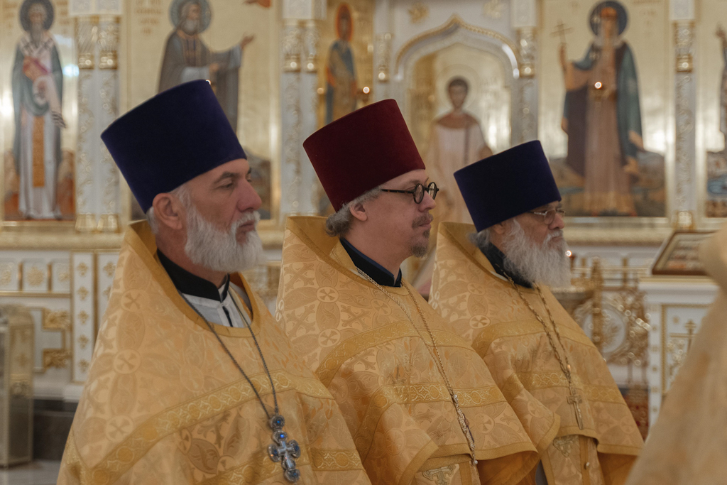 За Литургией в храме великомученицы Варвары Его Преосвященству сослужили: секретарь Норильского епархиального управления, настоятель храма великомученицы Варвары в районе Талнах города Норильска иеромонах Герман (Мельников); благочинный Туруханского округа, настоятель Свято-Троицкого монастыря села Туруханск игумен Софроний (Семенов); клирик Красноярской епархии, первый настоятель кафедрального собора иконы Божией Матери «Всех скорбящих Радость» г. Норильска протоиерей Сергий Шачин; клирик Оренбургской епархии протоиерей Димитрий Сурай; клирик Орловской епархии протоиерей Евгений Ковров; клирик храма великомученицы Варвары в районе Талнах города Норильска протоиерей Александр Дмитриев; заведующий канцелярией Норильского епархиального управления иерей Димитрий Прохоров; ключарь храма великомученицы Варвары в районе Талнах города Норильска иерей Антоний Проняев; духовенство города Норильска.