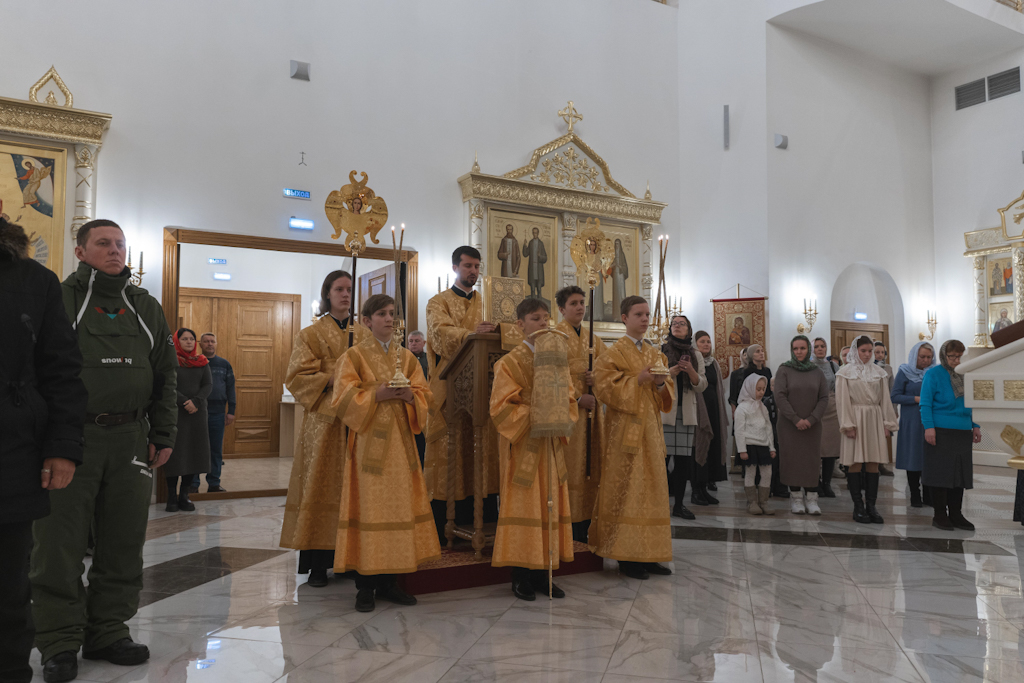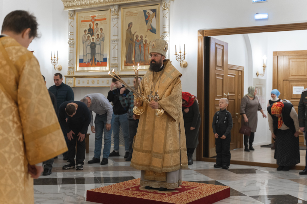 Накануне, вечером 4 ноября, епископ Агафангел в сослужении духовенства совершил всенощное бдение в храме новомучеников и исповедников Церкви Русской г. Норильска.