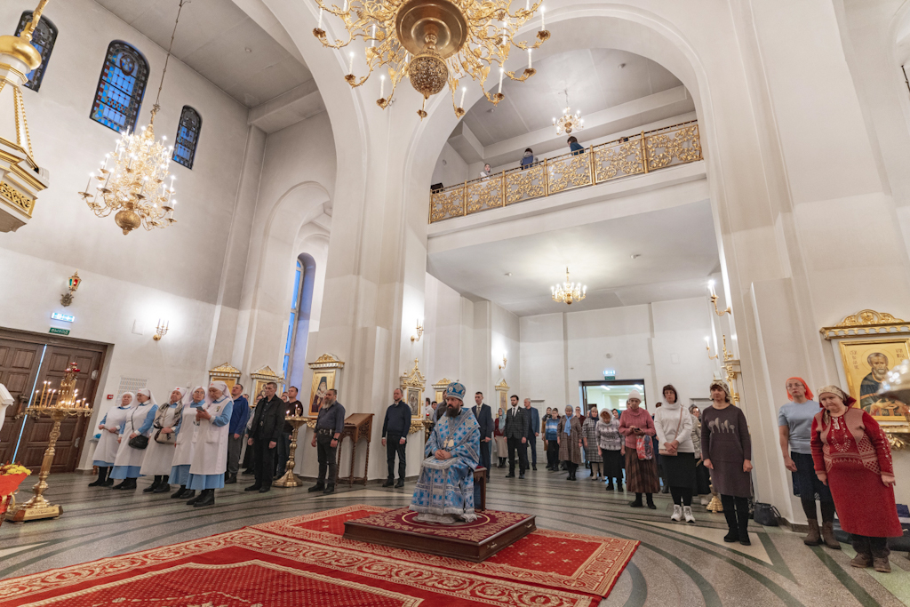 На сугубой ектении были вознесены особые прошения о единстве Церкви и Отечества, Архипастырь прочитал молитву о Святой Руси.