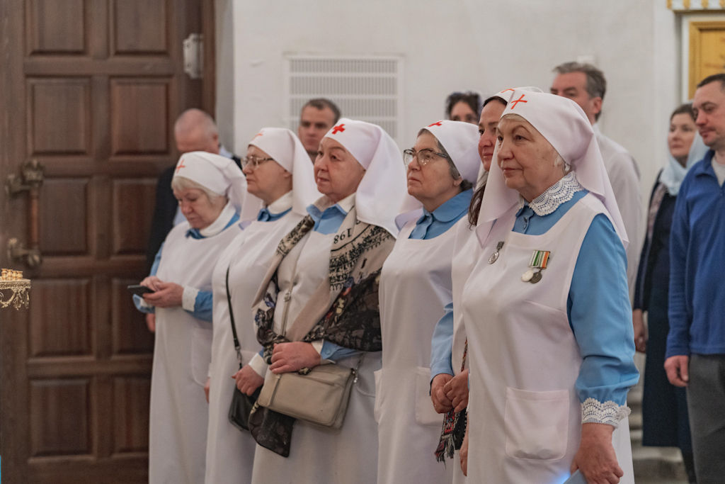 За всенощным бдением и Литургией Его Преосвященству сослужили: секретарь Норильского епархиального управления, настоятель кафедрального собора иконы Божией Матери «Всех скорбящих Радость» г. Норильска иеромонах Герман (Мельников); благочинный Туруханского округа, настоятель Свято-Троицкого монастыря села Туруханск игумен Софроний (Семенов); клирик Красноярской епархии, первый настоятель кафедрального собора г. Норильска протоиерей Сергий Шачин; клирик Оренбургской епархии протоиерей Димитрий Сурай; клирик Орловской епархии протоиерей Евгений Ковров; духовник Норильской епархии протоиерей Владимир Иванов; благочинный Норильского округа, настоятель храма новомучеников и исповедников Церкви Русской г. Норильска иерей Геннадий Дубинко; руководитель епархиального отдела по тюремному служению, настоятель храма Преображения Господня в районе Кайеркан г. Норильска иерей Александр Попов; заведующий канцелярией Норильского епархиального управления, благочинный кафедрального собора г. Норильска иерей Димитрий Прохоров; духовенство кафедрального собора и города Норильска.