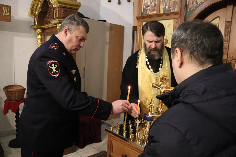 На богослужении присутствовали Начальник Отдела МВД России по г. Норильску, подполковник полиции О.В. Мусихин; руководство и сотрудники Отдела МВД России по г. Норильску; представители Общественного совета и ветеранской организации г. Норильска.