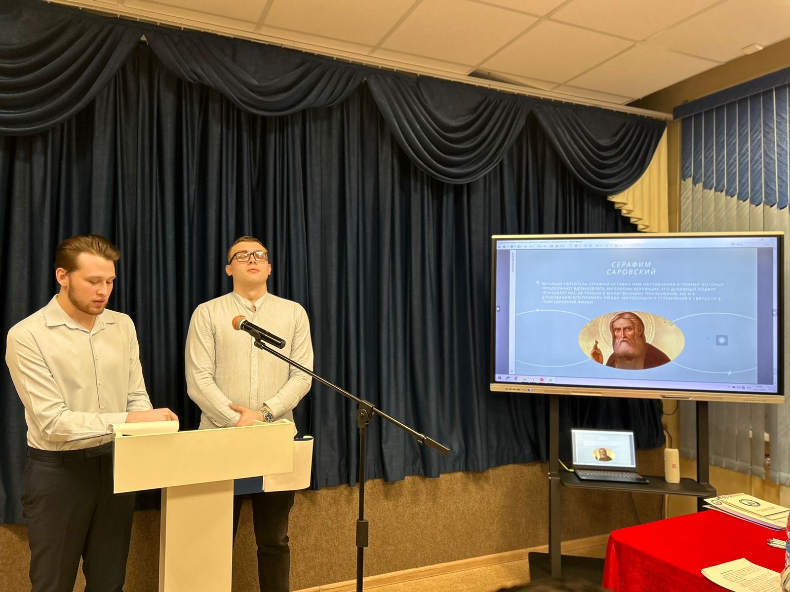 «Духовный подвиг преподобного Серафима Саровского» (докладчики — студенты 1 курса ЗГУ им. Н.М. Федоровского г. Норильска А.С. Хамица и И.А. Полтавский);