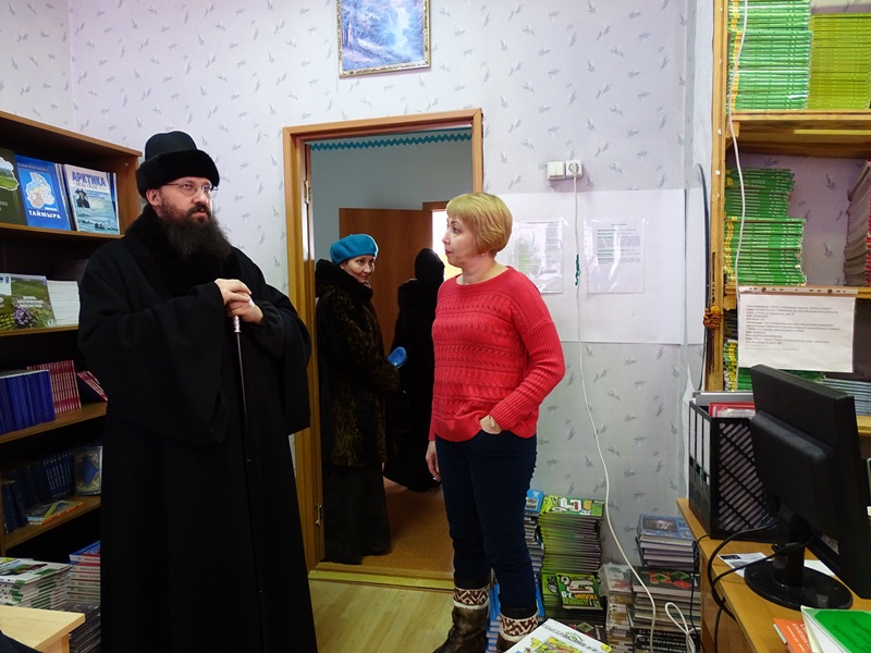 При посещении участковой больницы, библиотеки, администрации и детских образовательных учреждений Владыка беседовал с руководством и жителями поселка, обсуждал вопросы улучшения работы по катехизации и религиозному образованию.