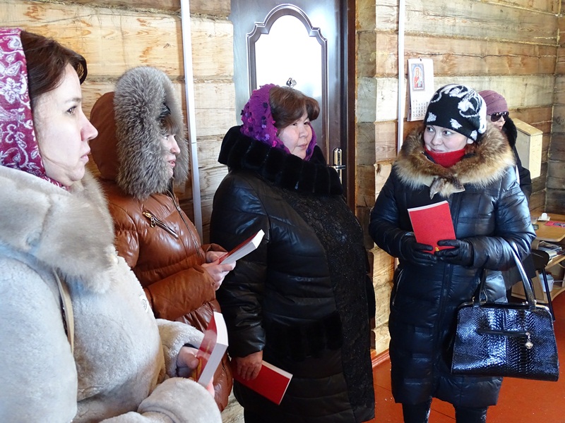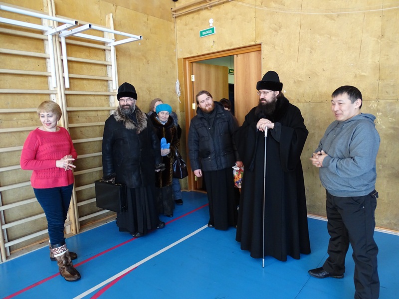 Затем Владыка и сопровождающее его духовенство совершили молебное пение в часовне в честь Жен-Мироносец, побеседовали с прихожанами и подарил всем Евангелие. Евангелие было передано также во все учебные заведения.