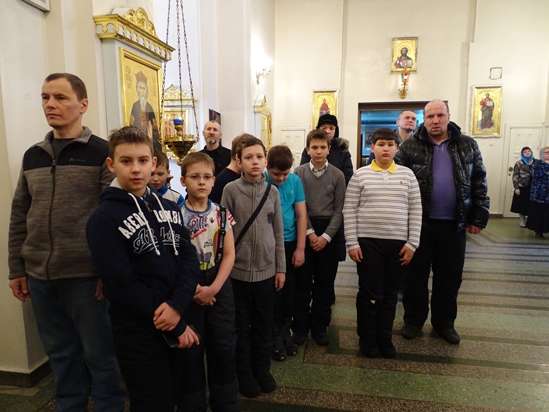 За богослужением присутствовали многочисленные школьники со своими родителями, которые посетили богослужение в рамках изучения в школе Основ Православной культуры. Многие из них причастились Святых Христовых Тайн