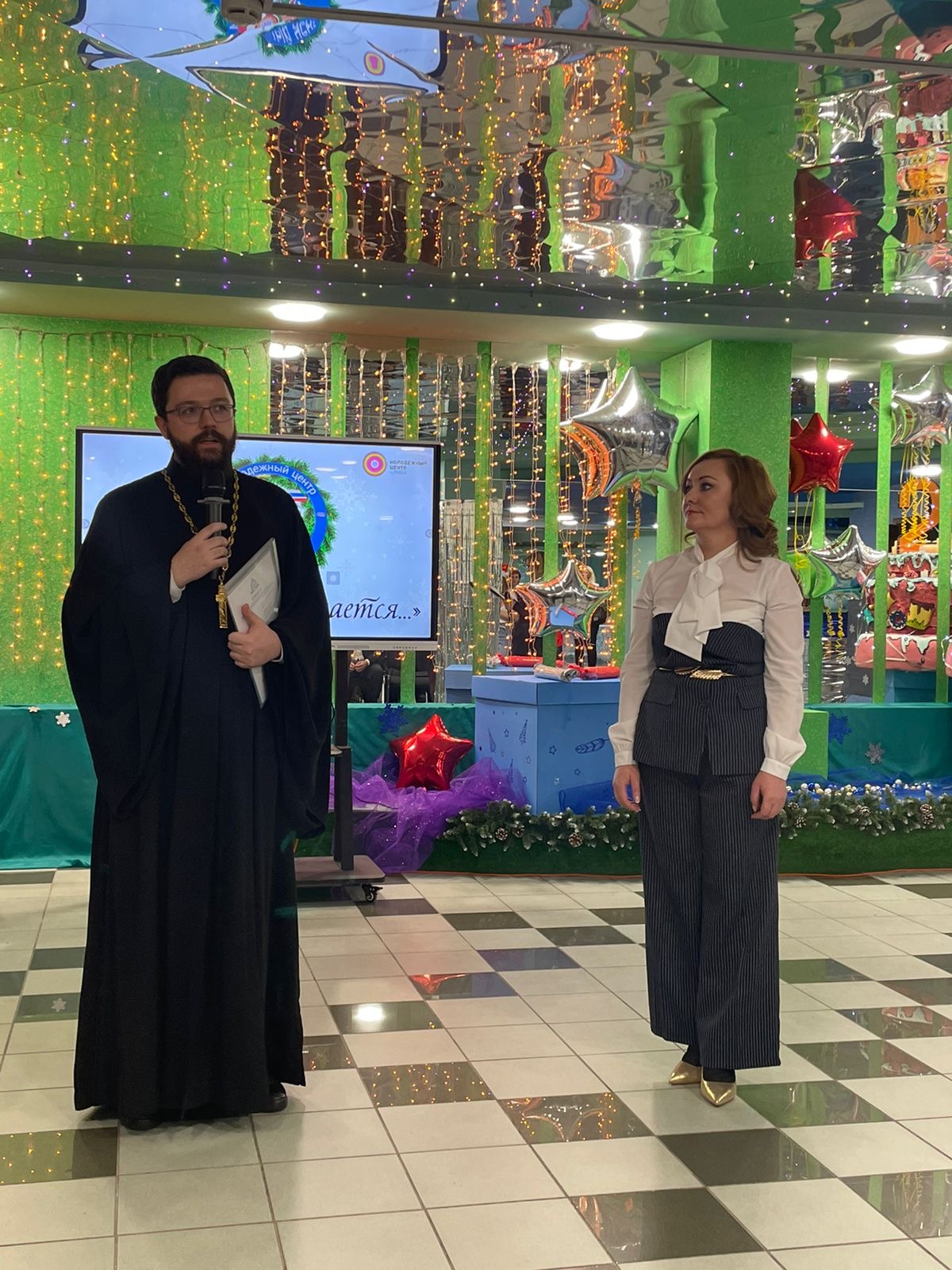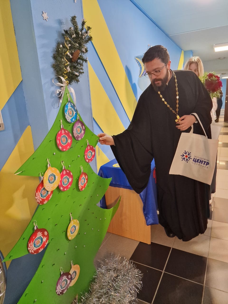 Перед началом праздничной программы иерей Димитрий обратился к участникам и гостям с приветственным словом, передав присутствующим приветствие и благословение епископа Норильского и Туруханского Агафангела.