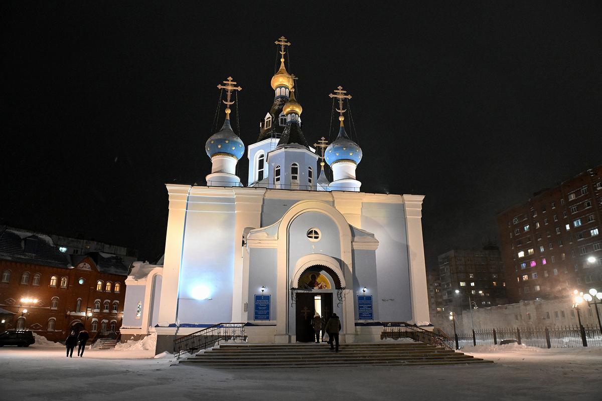 В ночь с 6 на 7 января 2024 года, в праздник Рождества Господа Бога и Спаса нашего Иисуса Христа, Преосвященнейший Агафангел, епископ Норильский и Туруханский, совершил Божественную литургию в кафедральном соборе иконы Божией Матери «Всех скорбящих Радость» города Норильска.