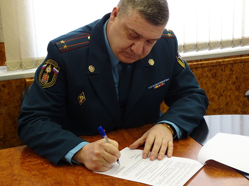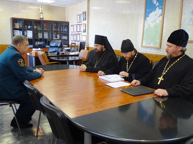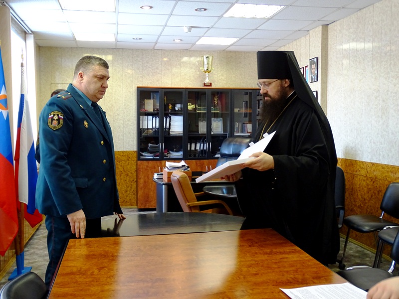 В ходе визита, Правящий Архиерей Норильской епархии подписал с огнеборцами Соглашение о сотрудничестве в целях духовно-нравственного и патриотического воспитания личного состава МЧС, а также профилактики чрезвычайных ситуаций различного характера, травм и гибели граждан при них на территории Норильского промышленного района. Особенный упор был сделан на военно-патриотическое воспитание подрастающего поколения, для чего руководством 7 Отряда, в лице п/полковника внутренней службы Лиходеева Дмитрия Борисовича, который и подписал данное Соглашение, было принято решение о предоставлении возможностей спортивного комплекса Отряда для занятий епархиального военно-патриотического клуба "Северная школа воинского искусства "Пересвет".