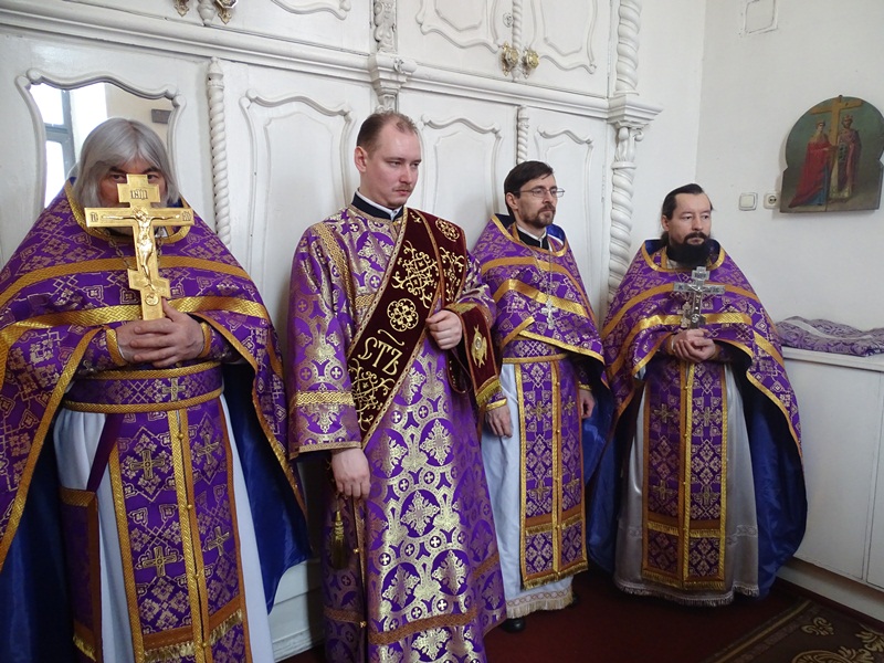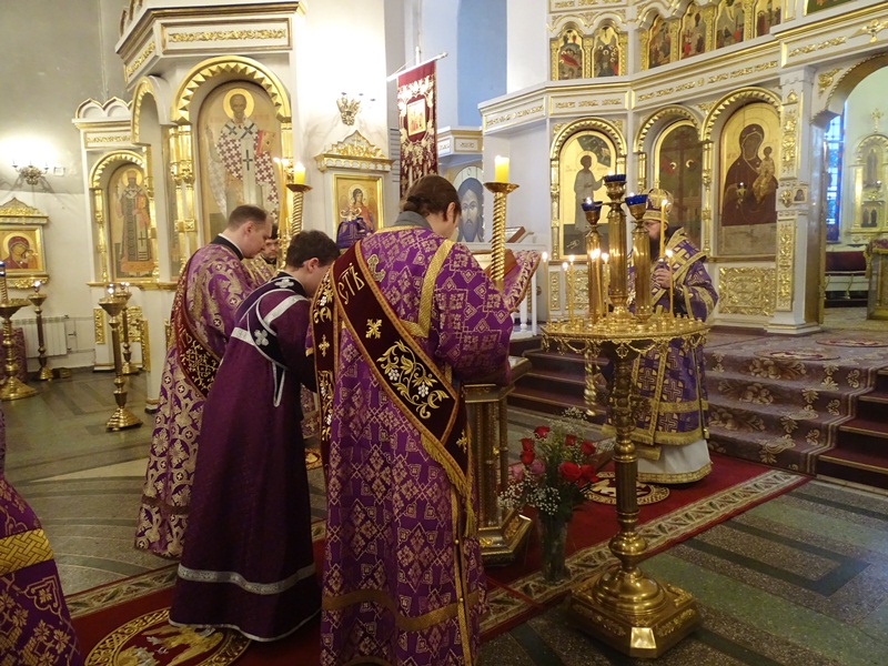 Его Преосвященству сослужили: секретарь Норильской епархии иеромонах Герман (Мельников); благочинный Норильского округа протоиерей Владимир Иванов; штатный клир собора.