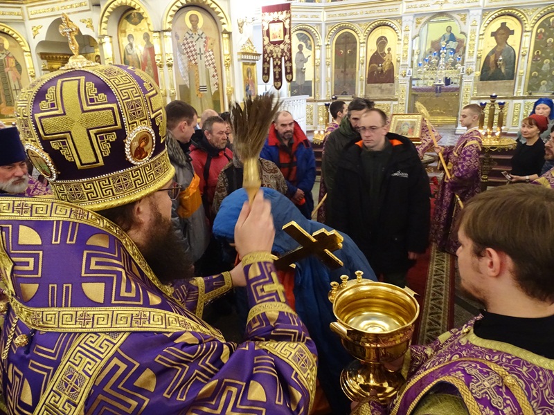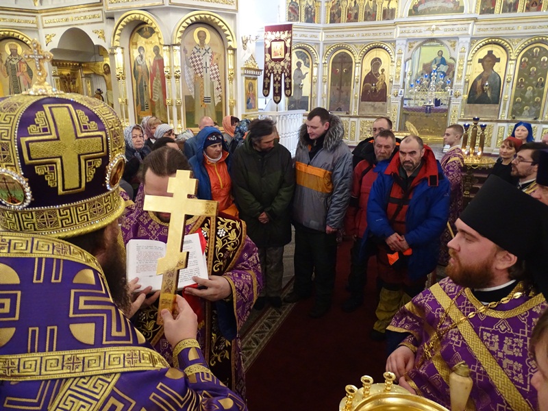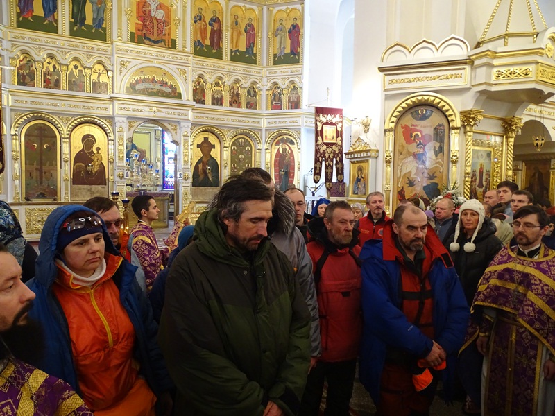 По окончании богослужения Архипастырь в сослужении духовенства совершил молебен о путешествующих и благословил в путь участников уникальной арктической автоэкспедиции «Притяжение Арктики – Таймырское Кольцо». Главная цель вояжа - впервые в истории достичь самой северной точки Евразийского континента – мыса Челюскин. Экспедиция приурочена к 70-летию Великой Победы.