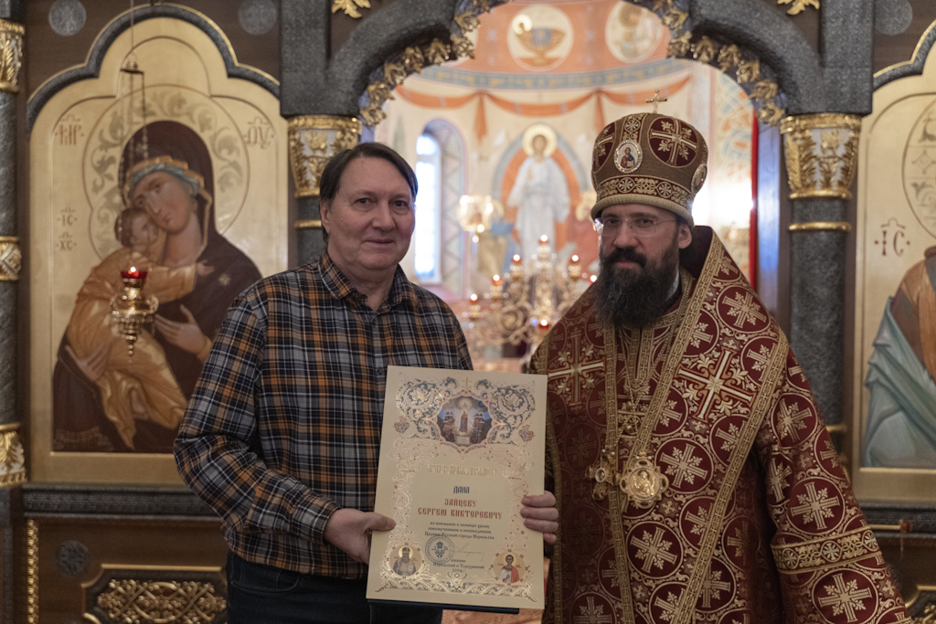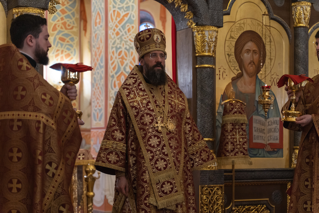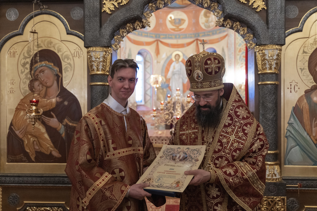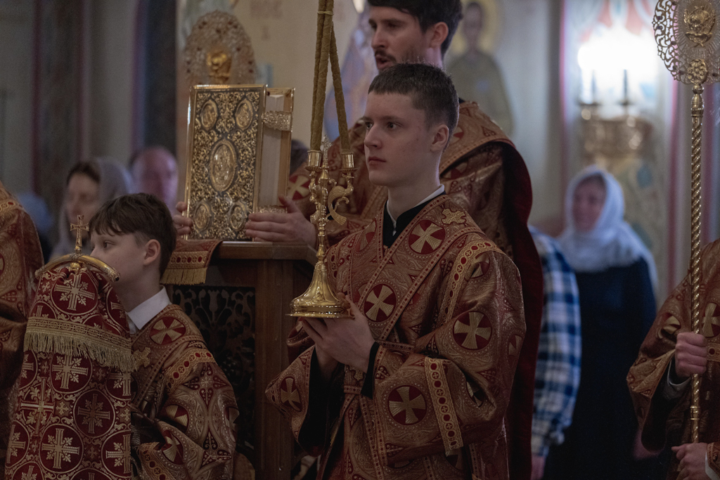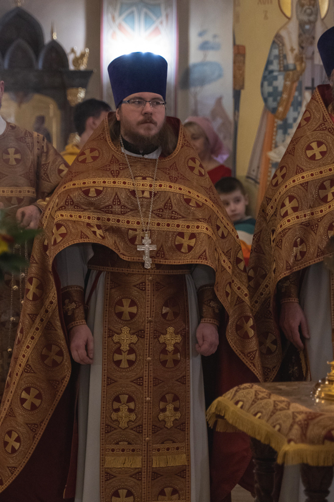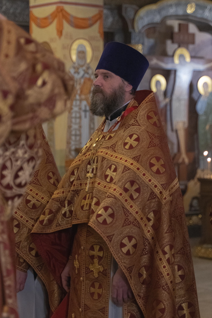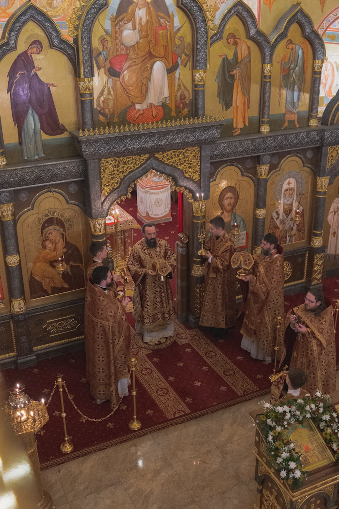 За Литургией Его Преосвященству сослужили: благочинный Норильского округа, настоятель храма новомучеников и исповедников Церкви Русской в г. Норильске иерей Геннадий Дубинко; заведующий канцелярией Норильского епархиального управления, благочинный кафедрального собора г. Норильска иерей Димитрий Прохоров; помощник руководителя епархиального отдела по социальному служению и церковной благотворительности, клирик храма новомучеников и исповедников Церкви Русской г. Норильска иерей Никита Челядинов.
