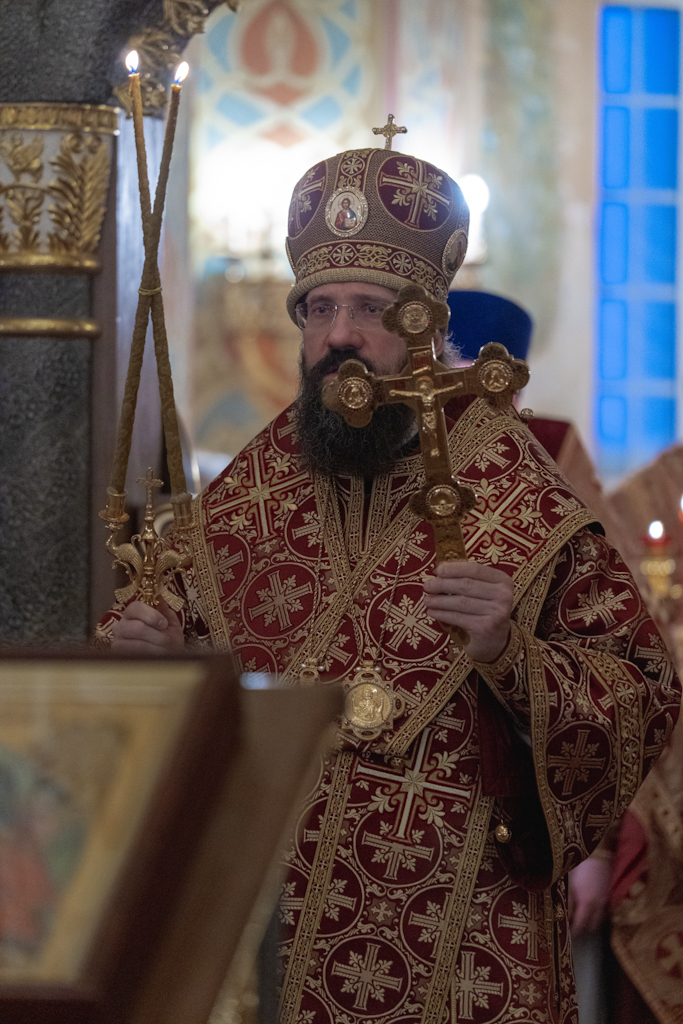 На сугубой ектении были вознесены особые прошения, Архипастырь прочитал молитву о Святой Руси.