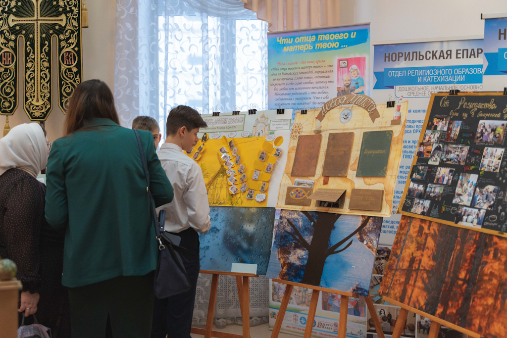 Затем состоялось выступление команд воспитанников воскресных школ в конкурсных номинациях. Зрителям были представлены собственные творческие заготовки: сценическое выступление на тему «Норильской епархии 10 лет, а нашей воскресной школе ...», стенгазета о деятельности воскресной школы за последний год и видеоэкскурсия на тему «Жизнь как служение: к 100-летию пребывания святителя Луки (Войно-Ясенецкого) в селе Туруханске».