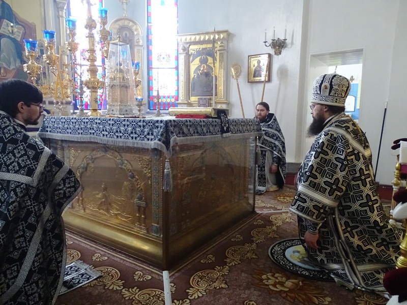 3 апреля 2015 года, в день памяти преподобного Серафима Вырицкого, Преосвященнейший епископ Агафангел совершил Литургию Преждеосвященных Даров в кафедральном соборе в честь иконы Божией Матери «Всех скорбящих Радость» города Норильска.