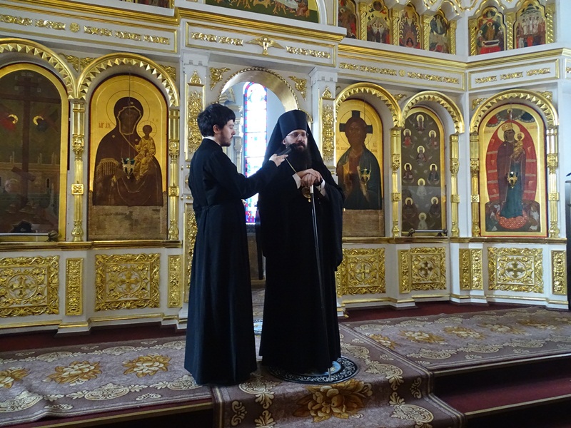 Его Преосвященству сослужили: секретарь Норильской епархии иеромонах Герман (Мельников); председатель епархиального отдела по социальному служению и церковной благотворительности иерей Сергий Андреев.