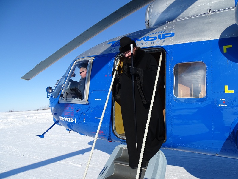 Его Преосвященство сопровождали: секретарь Норильской епархии иеромонах Герман (Мельников) и благочинный Таймырского округа протоиерей Георгий Ицков.