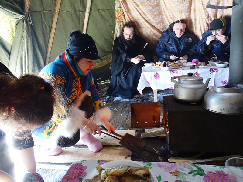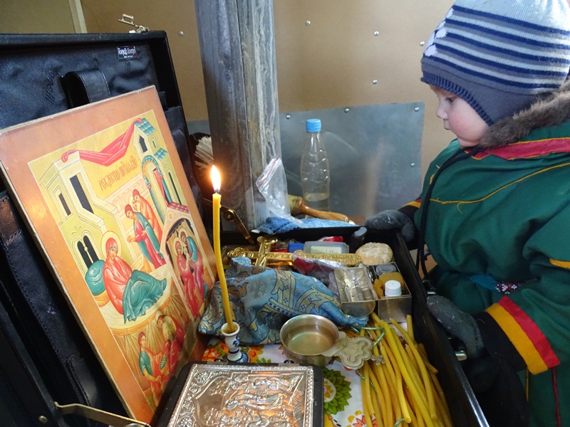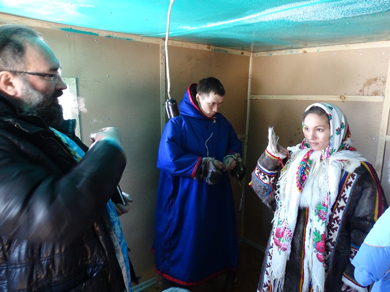 По благословению Его Преосвященства, протоиерей Георгий Ицков совершил Таинство Крещения. В этот день крещение приняли 13 человек из числа кочевников, проживающих в тухардской тундре.