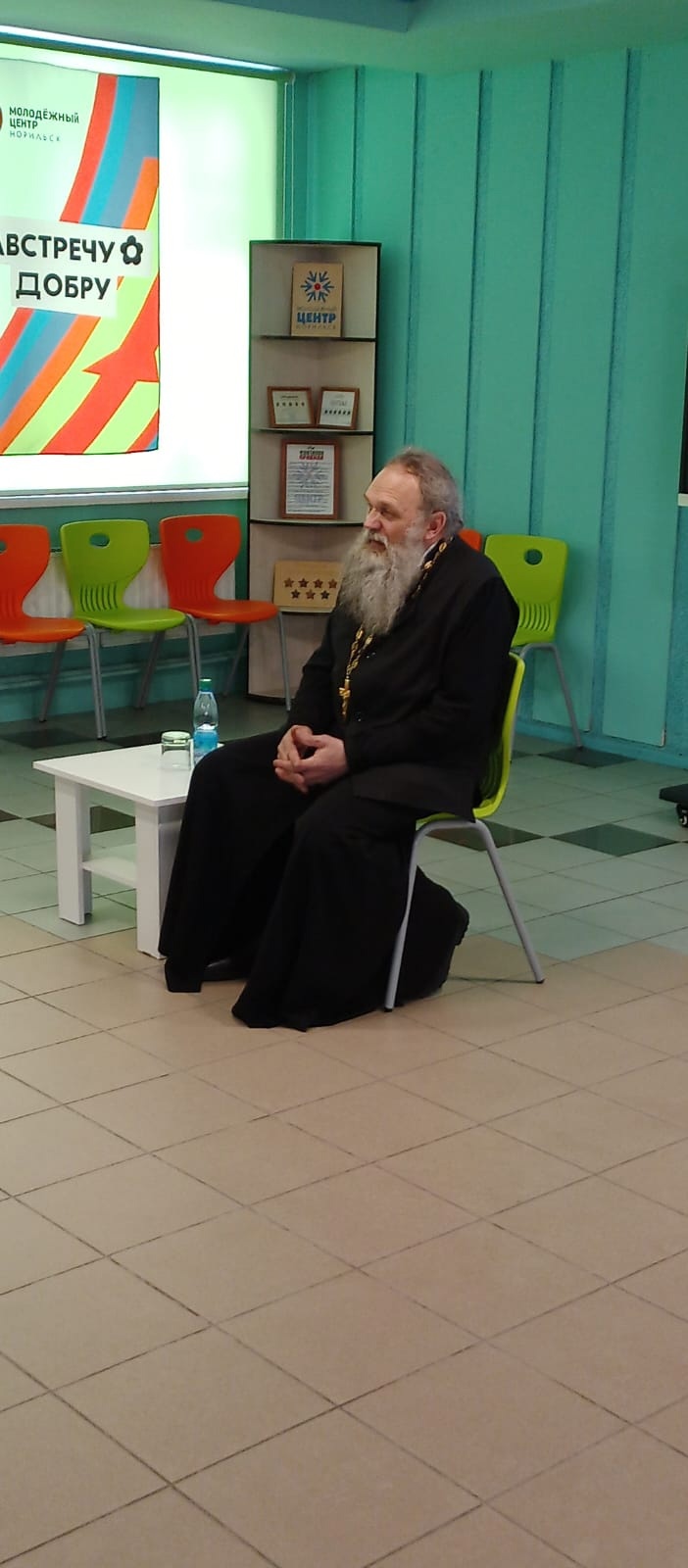 22 апреля 2024 года в МБУ «Молодежный центр» г. Норильска состоялась встреча руководителя епархиального отдела по тюремному служению, настоятеля храма Преображения Господня в районе Кайеркан города Норильска иерея Александра Попова с участниками юнармейского отряда «Север» МБОУ «СШ №45» г. Норильска.