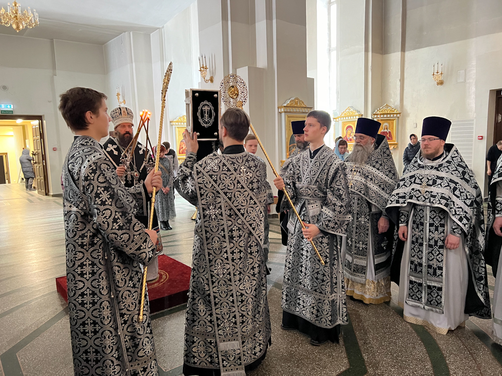 30 апреля 2024 года, во вторник Страстной седмицы, Преосвященнейший Агафангел, епископ Норильский и Туруханский, совершил Литургию Преждеосвященных Даров в кафедральном соборе иконы Божией Матери «Всех скорбящих Радость» города Норильска.