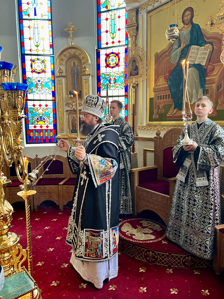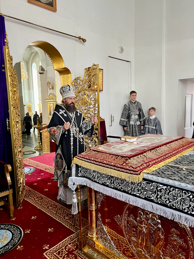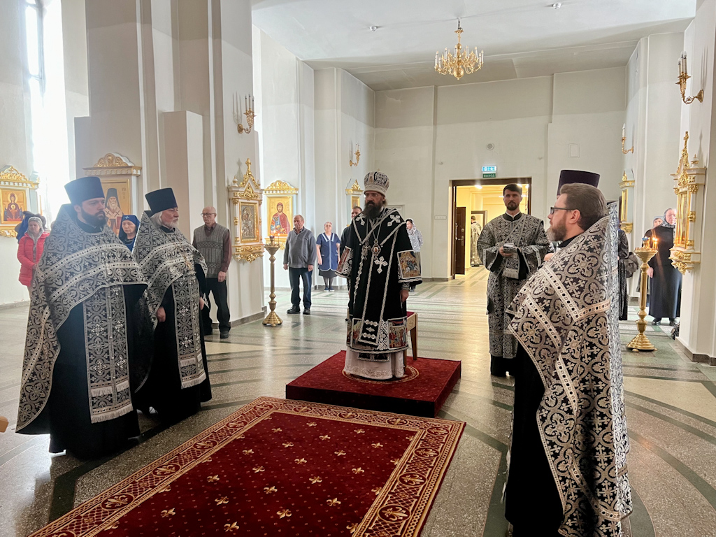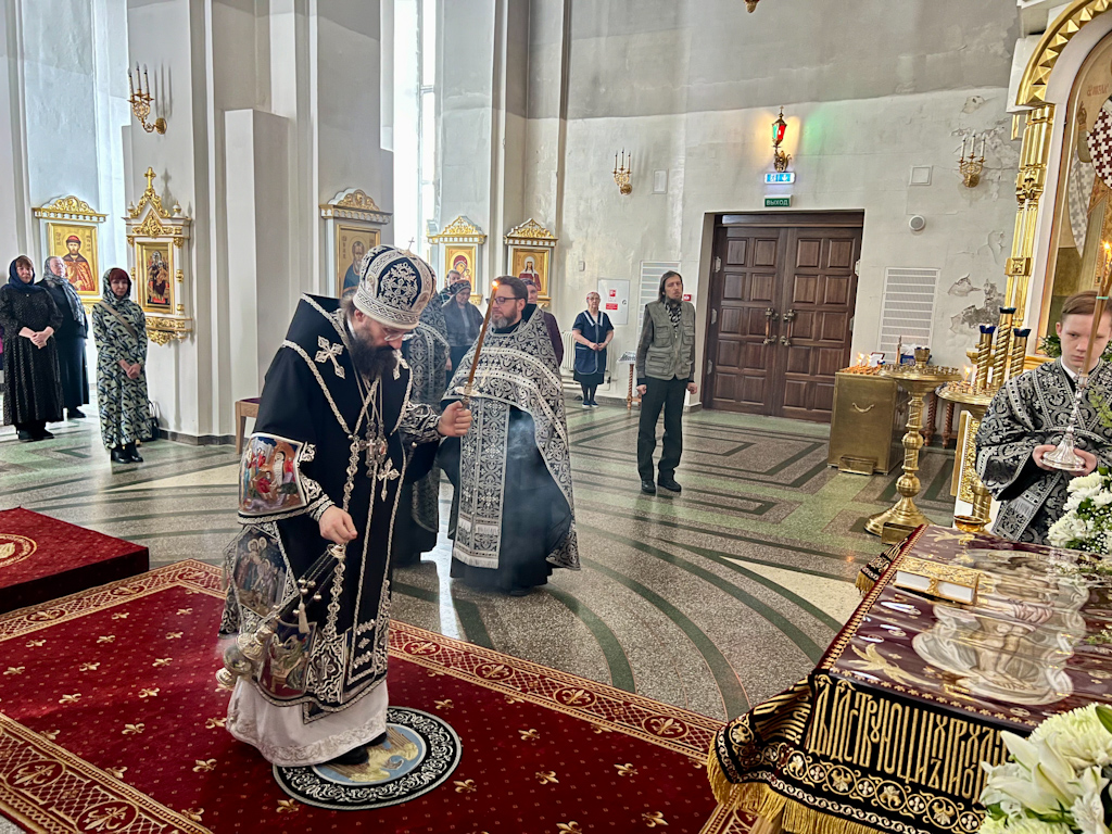 3 мая 2024 года, в Великий Пяток — день, посвященный воспоминанию Святых спасительных Страстей Господа нашего Иисуса Христа, Преосвященнейший Агафангел, епископ Норильский и Туруханский, совершил вечерню с выносом Плащаницы Спасителя в кафедральном соборе иконы Божией Матери «Всех скорбящих Радость» города Норильска.