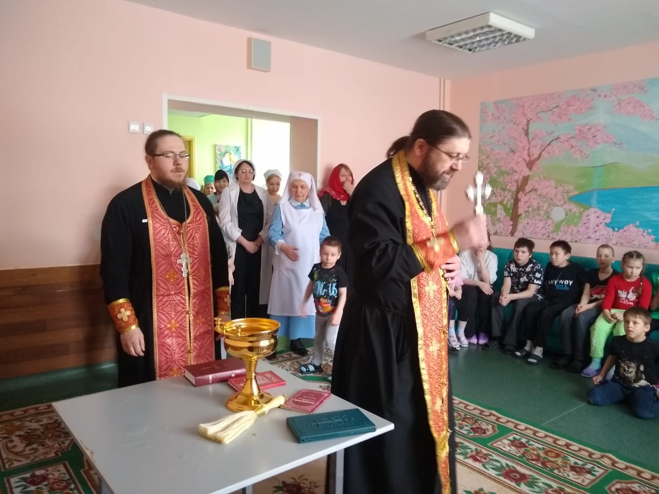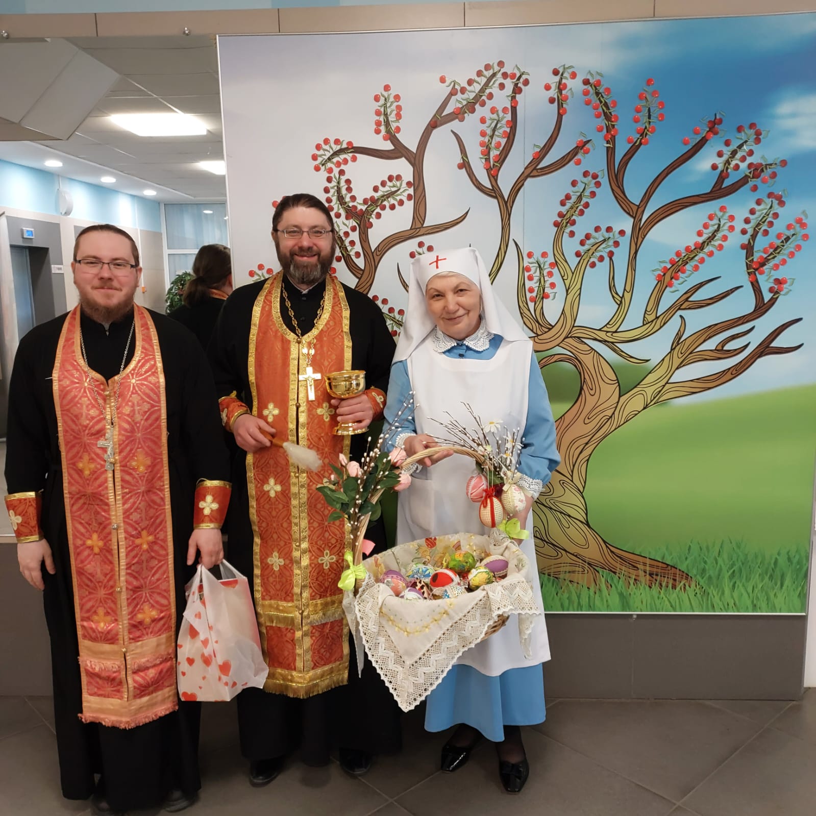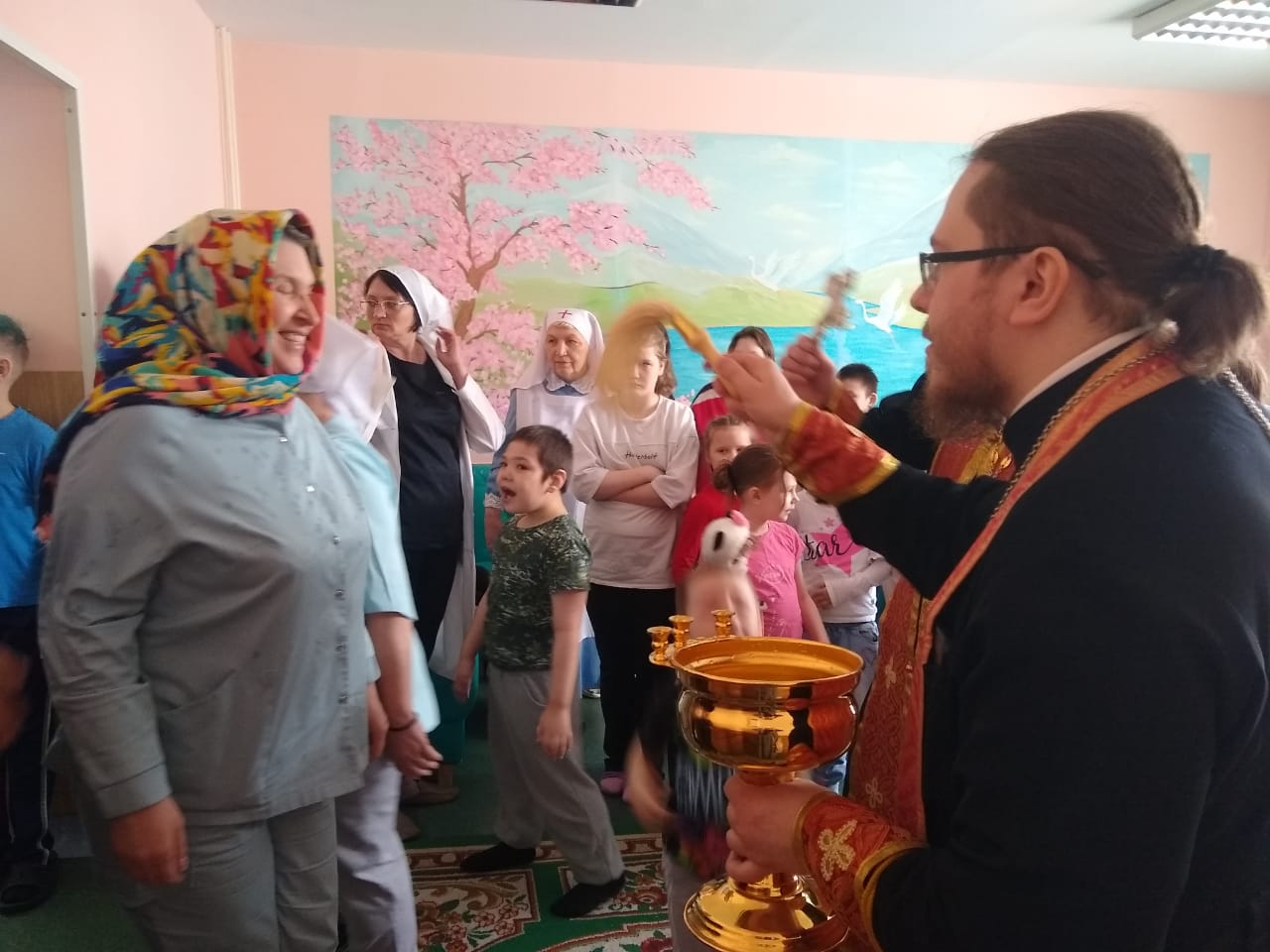 По окончании молебна духовенство поздравило присутствующих пациентов и подопечных с праздником Пасхи.