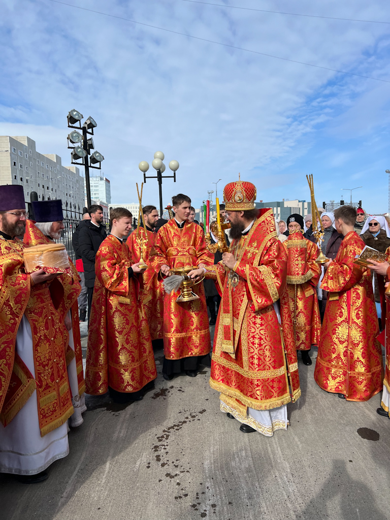 Его Преосвященству сослужили: секретарь Норильского епархиального управления, настоятель кафедрального собора иконы Божией Матери «Всех скорбящих Радость» г. Норильска иеромонах Герман (Мельников); духовник Норильской епархии протоиерей Владимир Иванов; благочинный Норильского округа, настоятель храма новомучеников и исповедников Церкви Русской в г. Норильске иерей Геннадий Дубинко; духовенство города Норильска.