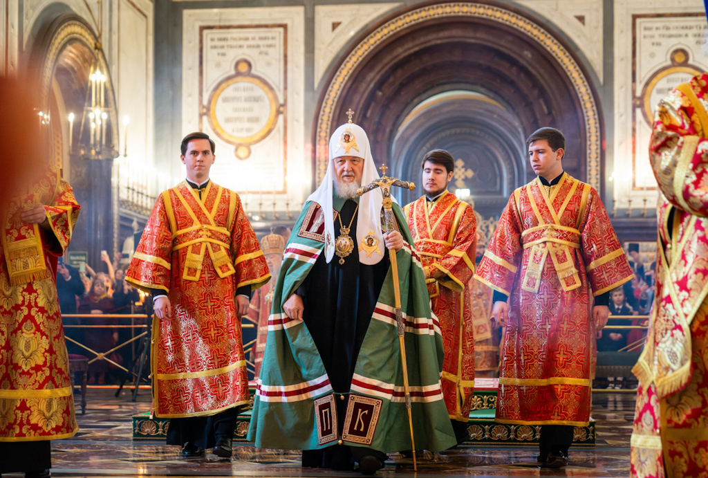 «Еще молимся Тебе, Господу Богу нашему, еже услышатися гласу моления нашего, и молитве, и помиловати раба Твоего, ныне тезоименитаго Святейшаго Патриарха Кирилла благодатию и щедротами Твоими, и исполнити вся прошения его, и простити ему вся согрешения вольная и невольная: благоприятным же быти мольбам и милостыням его пред престолом владычествия Твоего, и покрыти его от враг видимых и невидимых, от всякия напасти, беды и скорби, и недугов избавити, и подати здравие с долгоденствием: рцем вси, Господи, услыши и помилуй.