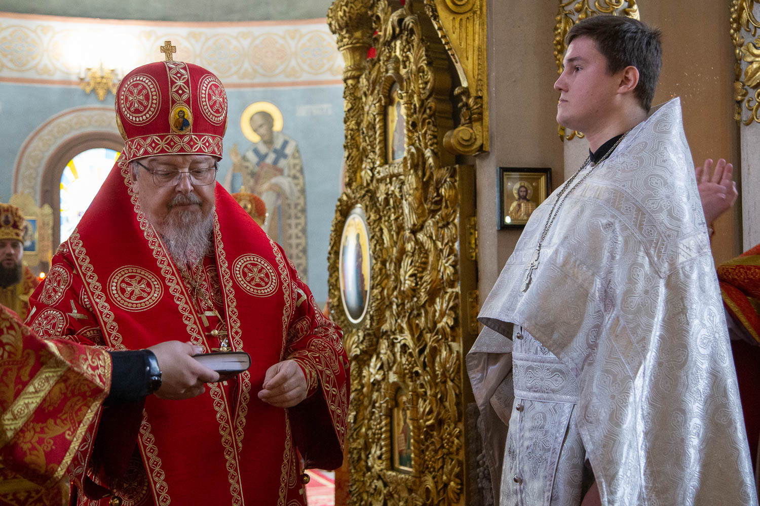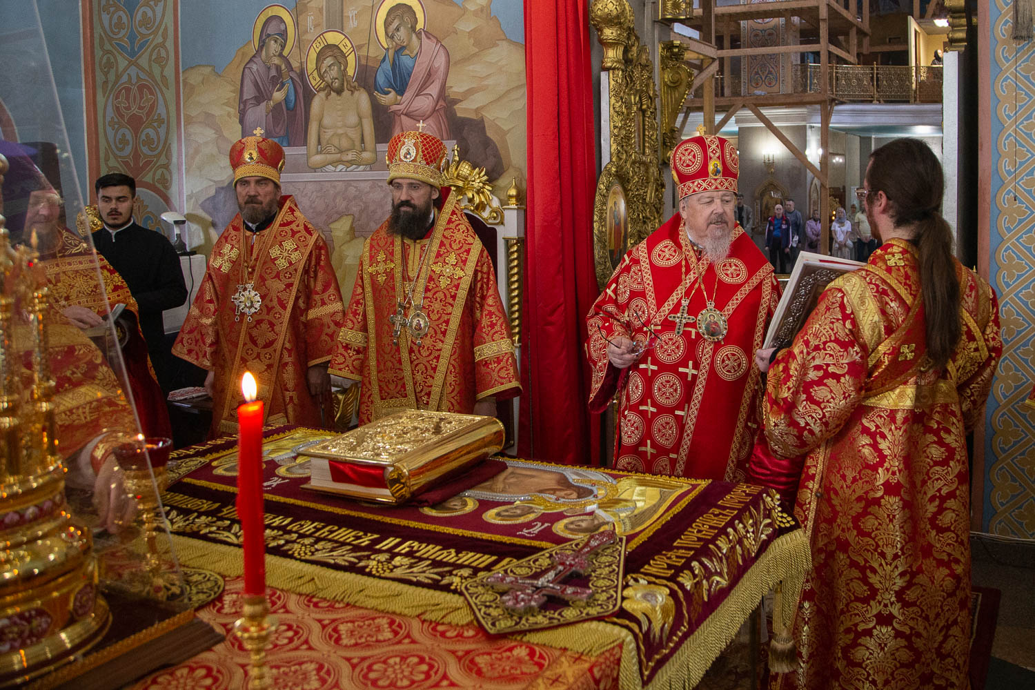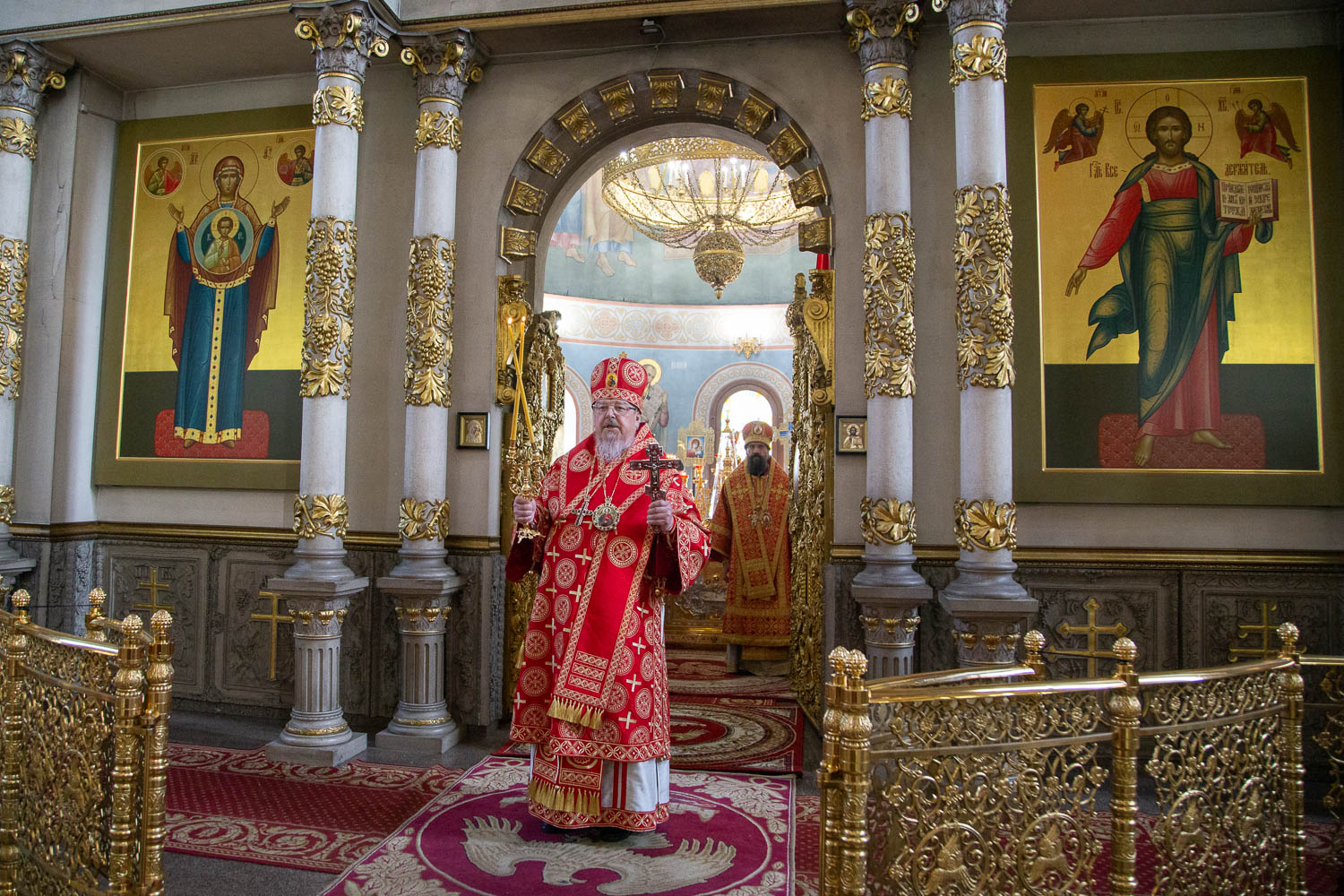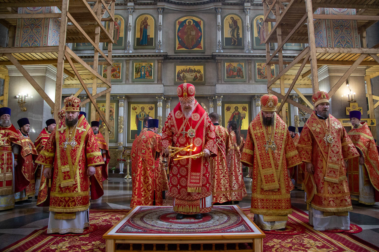За Литургией архиереям сослужили: секретарь Красноярской епархии, благочинный церквей Левобережного городского округа Красноярска, наместник красноярского Успенского мужского монастыря игумен Иннокентий (Нилов); заведующий канцелярией Красноярской епархии, настоятель Иоанно-Предтеченского храма Красноярска протоиерей Николай Ши-кэ-мин; благочинный церквей Правобережного округа Красноярска, настоятель храма Рождества Христова Красноярска протоиерей Максим Смоляков; председатель Миссионерского отдела Красноярской епархии, благочинный Красноярского окружного благочиния, настоятель Трёхсвятительского храма Красноярска иерей Василий Вершинский; секретарь Минусинской епархии, благочинный церквей Минусинского округа, настоятель Спасского собора города Минусинска протоиерей Евгений Нещерет и штатные священнослужители Красноярской епархии.