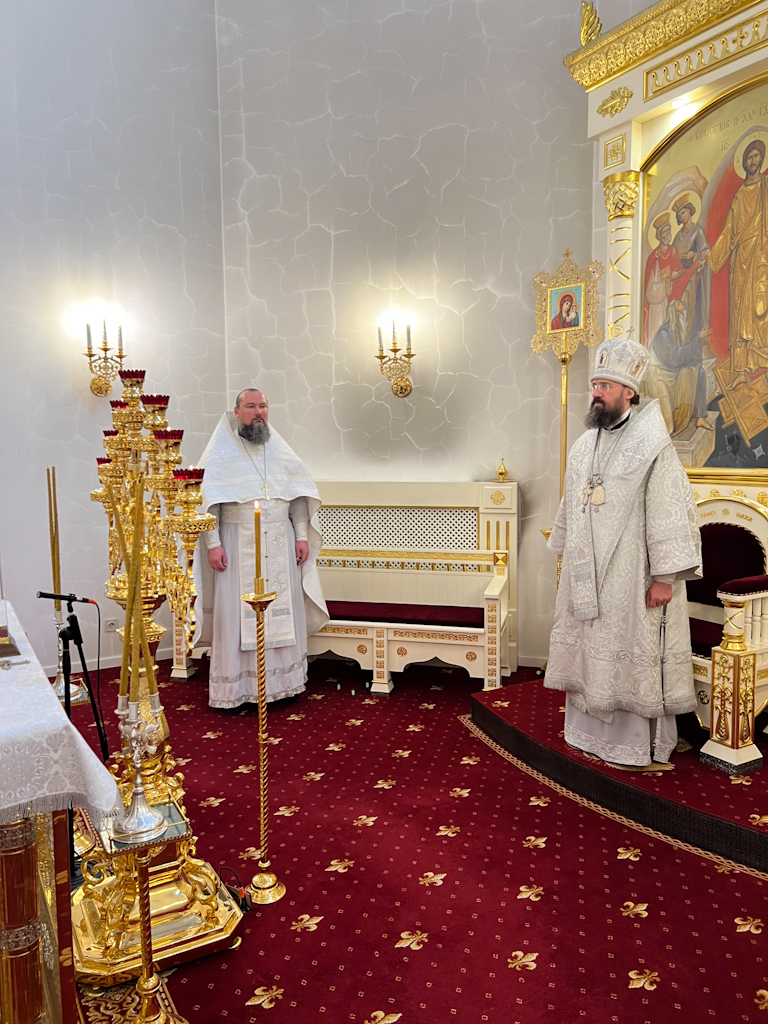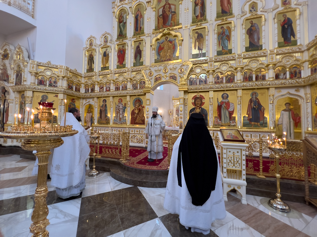 За Литургией Его Преосвященству сослужили благочинный Норильского округа, настоятель храма новомучеников и исповедников Церкви Русской в г. Норильске иерей Геннадий Дубинко; заведующий канцелярией Норильского епархиального управления, благочинный кафедрального собора г. Норильска иерей Димитрий Прохоров.